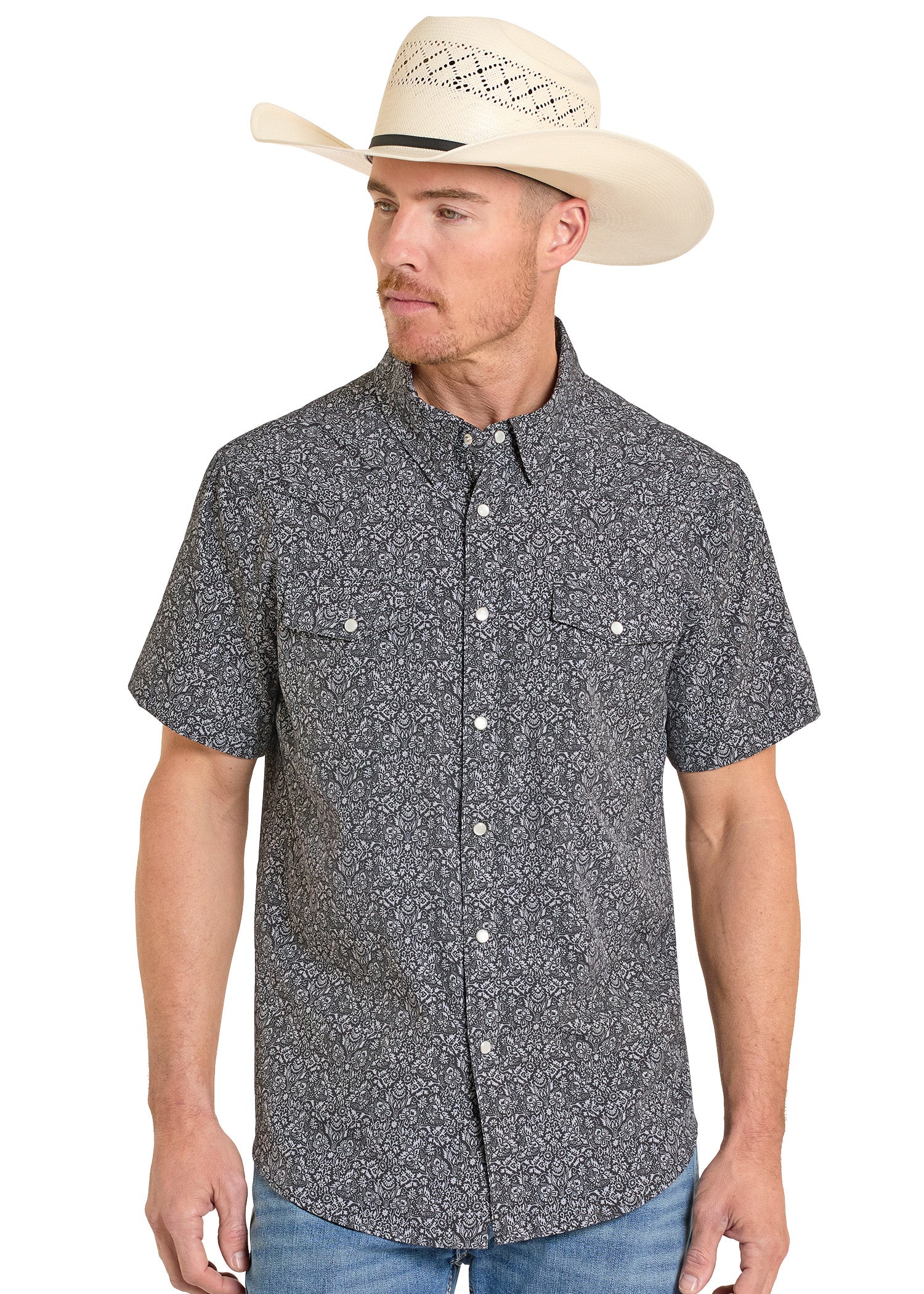 NewAbstract Floral Short Sleeve Snap Performance Shirt