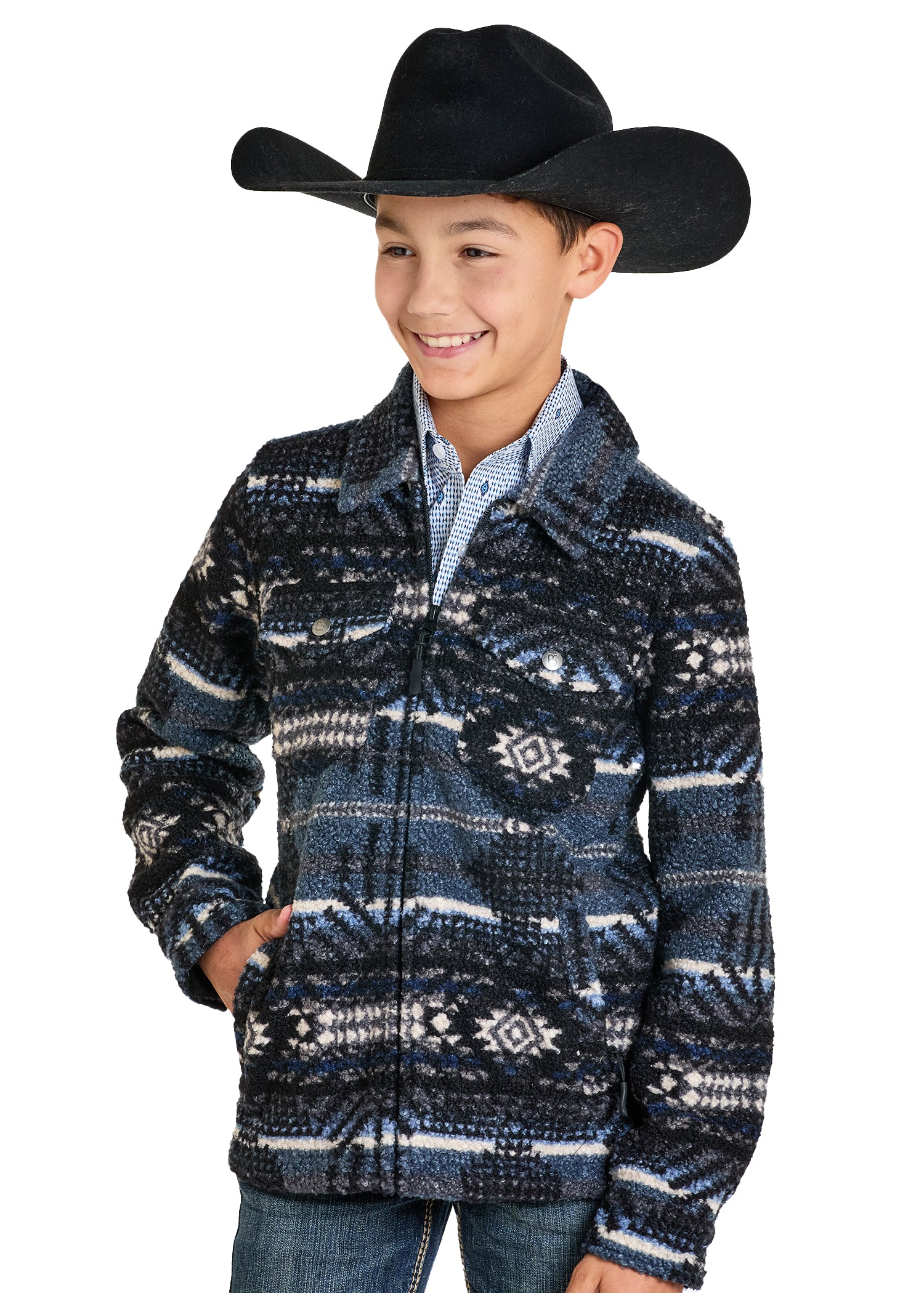 SaleBlue Aztec Print Snap Berber Jacket - S
