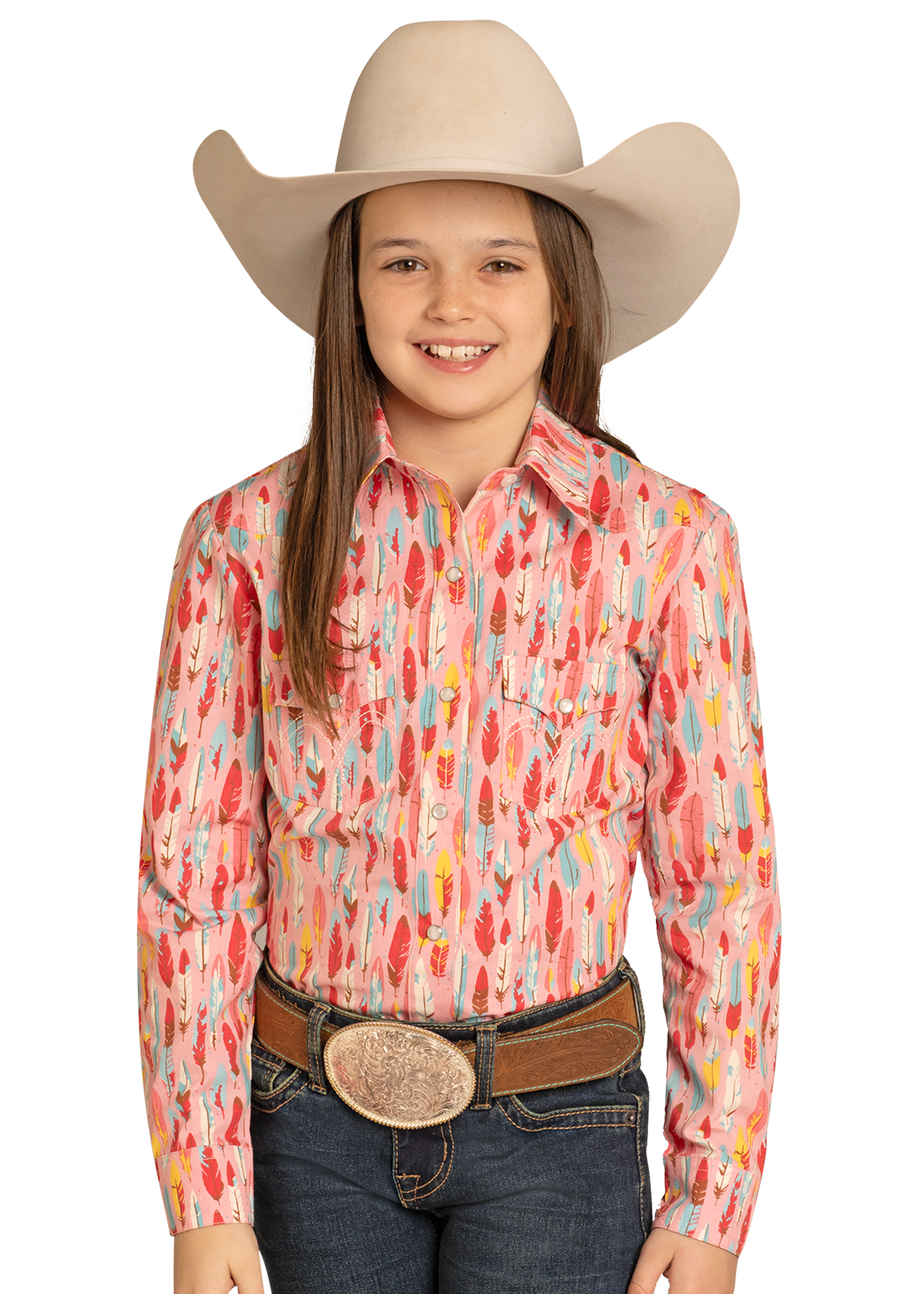 NewGirls' Feather Long Sleeve Snap Shirt