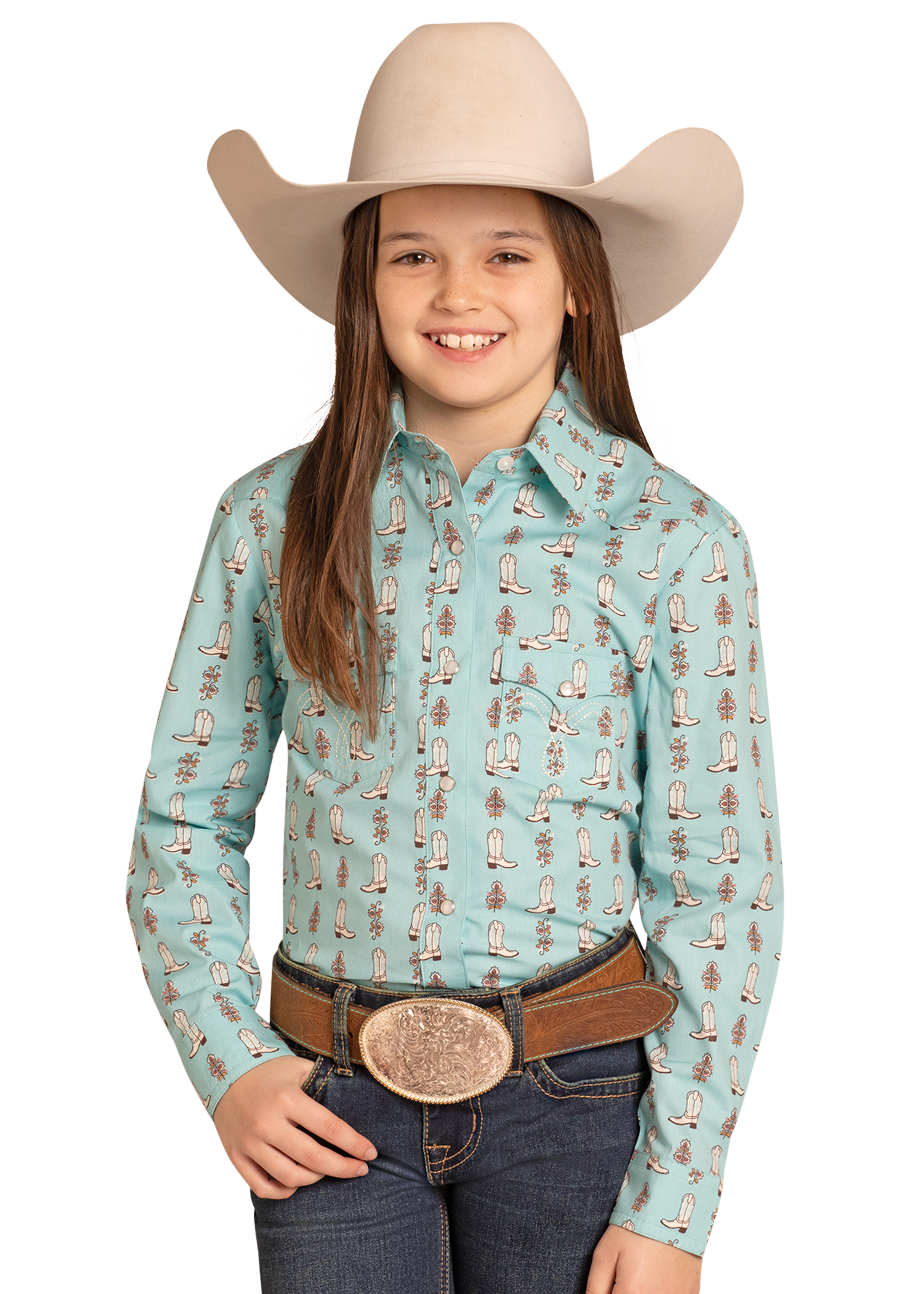 SaleGirls' Lucky Boots Long Sleeve Snap Shirt