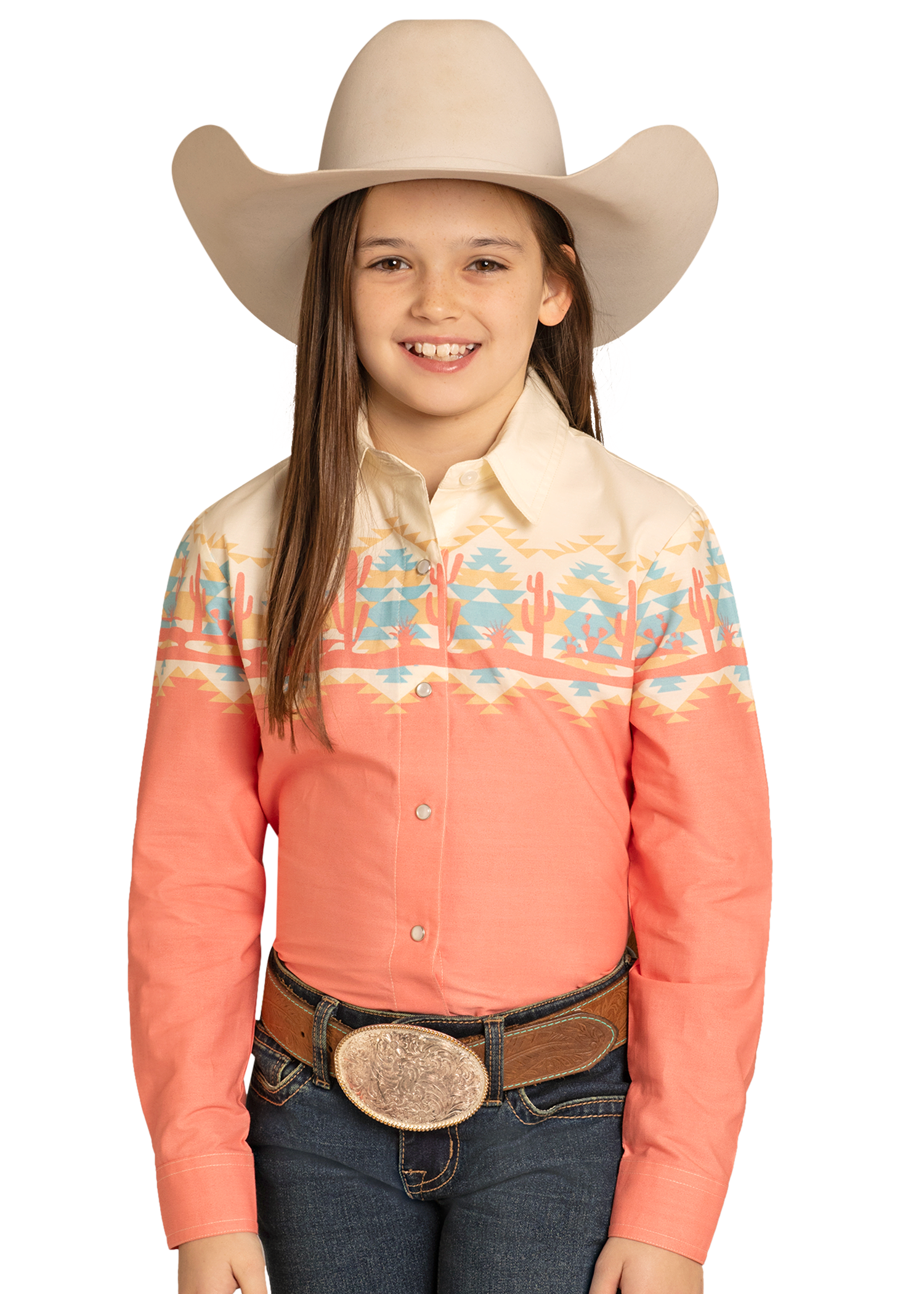 NewGirls' Cactus Boarder Long Sleeve Snap Shirt