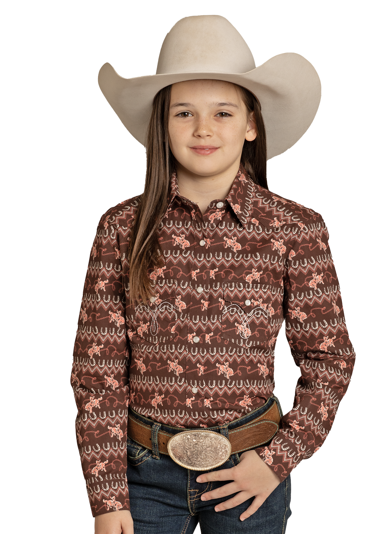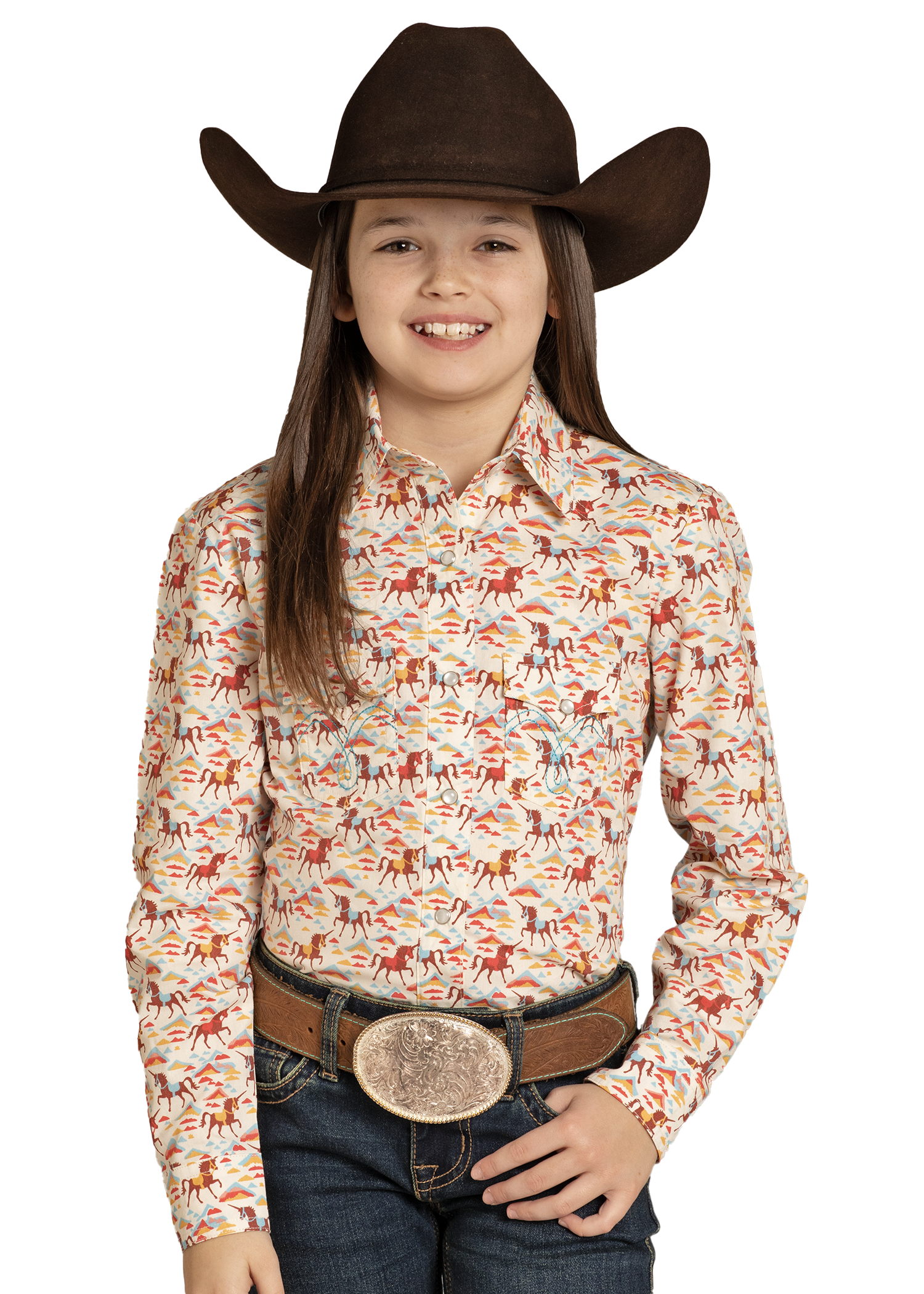 NewGirls' Horseshoe Cowboy Long Sleeve Snap Shirt