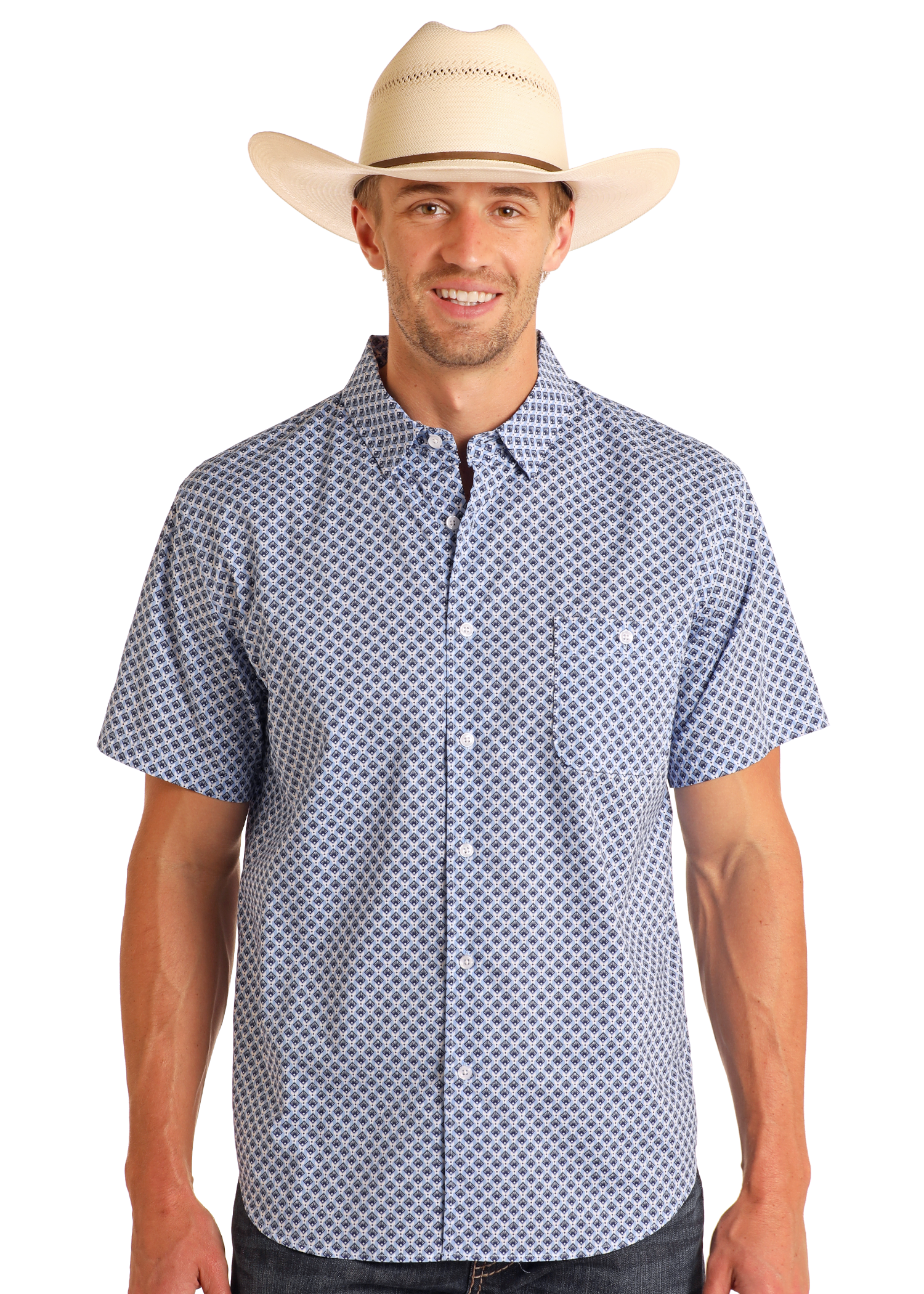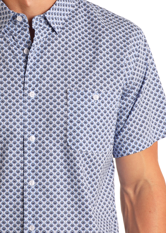 SaleRough Stock Novelty Geo Short Sleeve Button Down Shirt