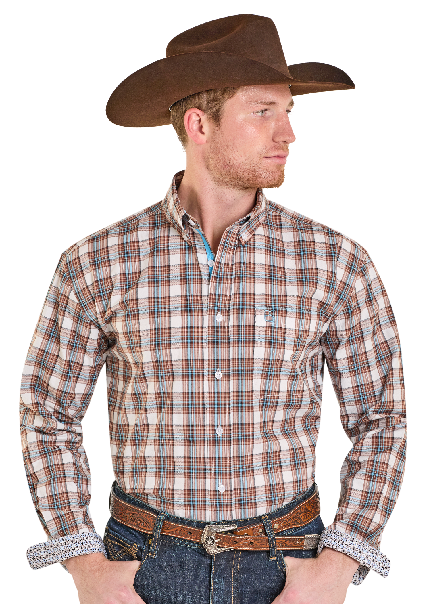 NewRough Stock Brown Plaid Long Sleeve Button Shirt