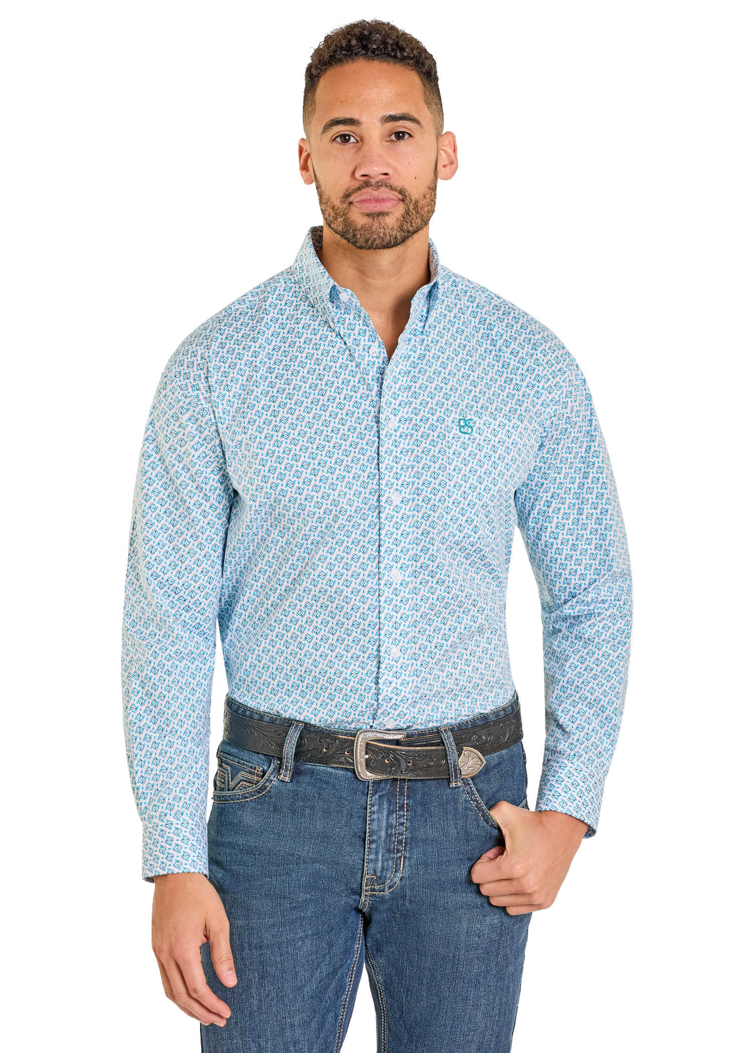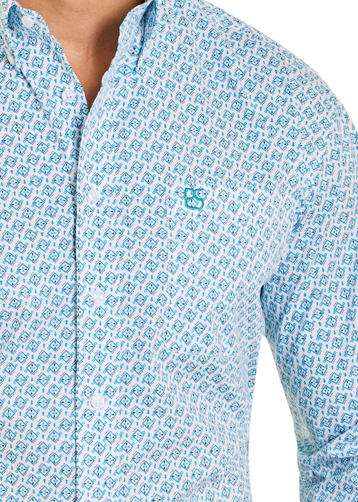 SaleRough Stock Blue Geo Long Sleeve Button Down Shirt