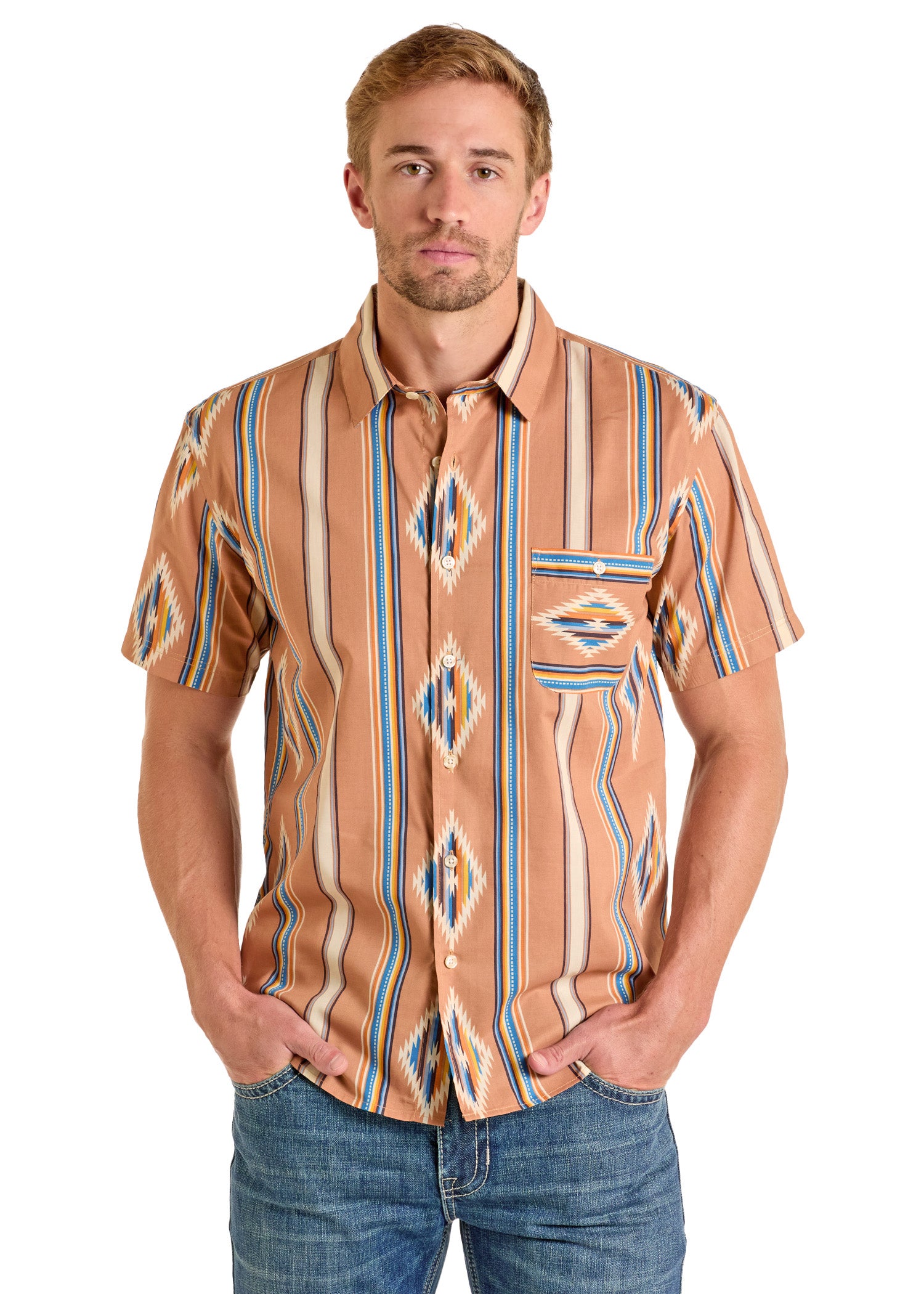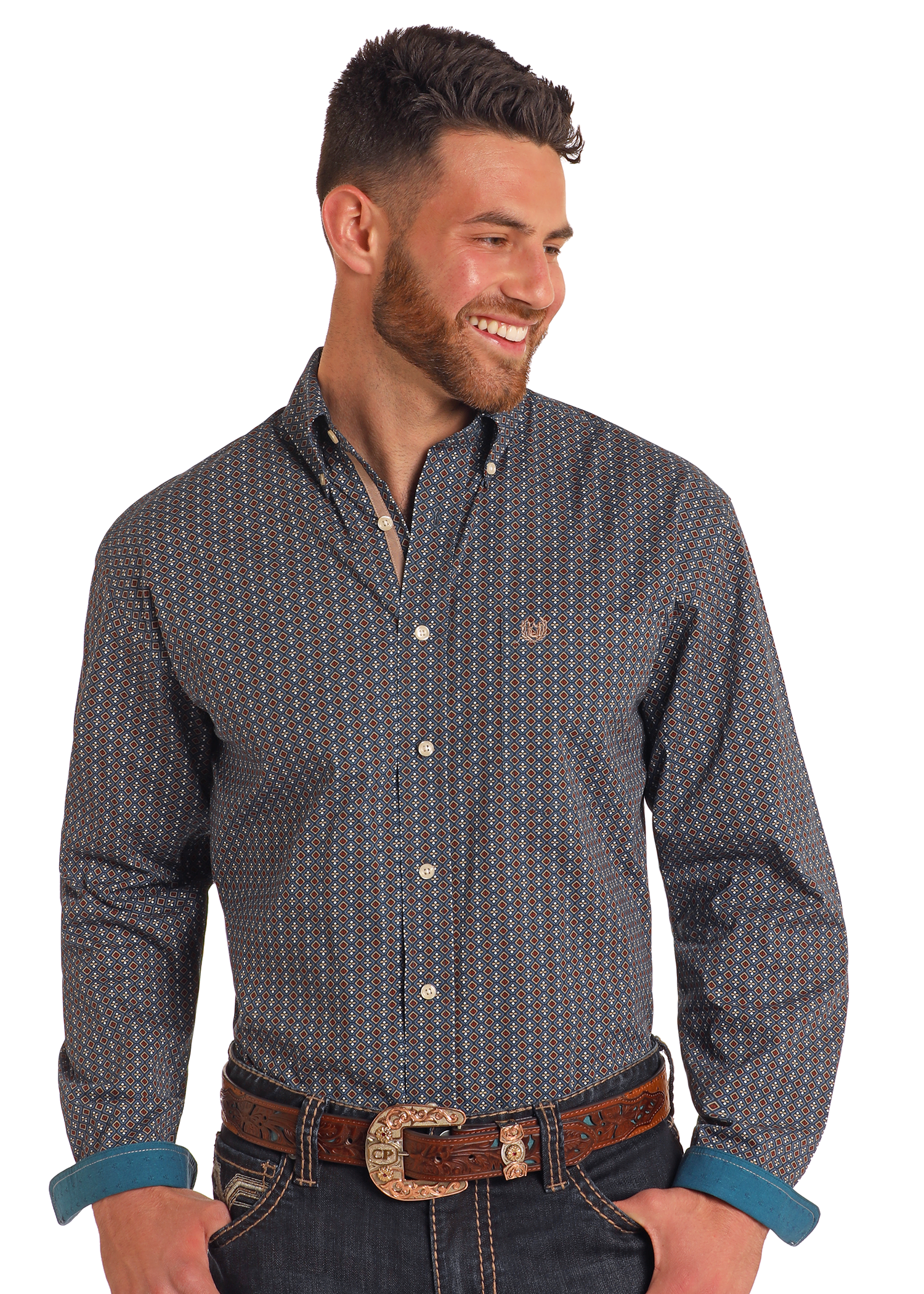 NewTurquoise Medallion Diamond Long Sleeve Button Shirt