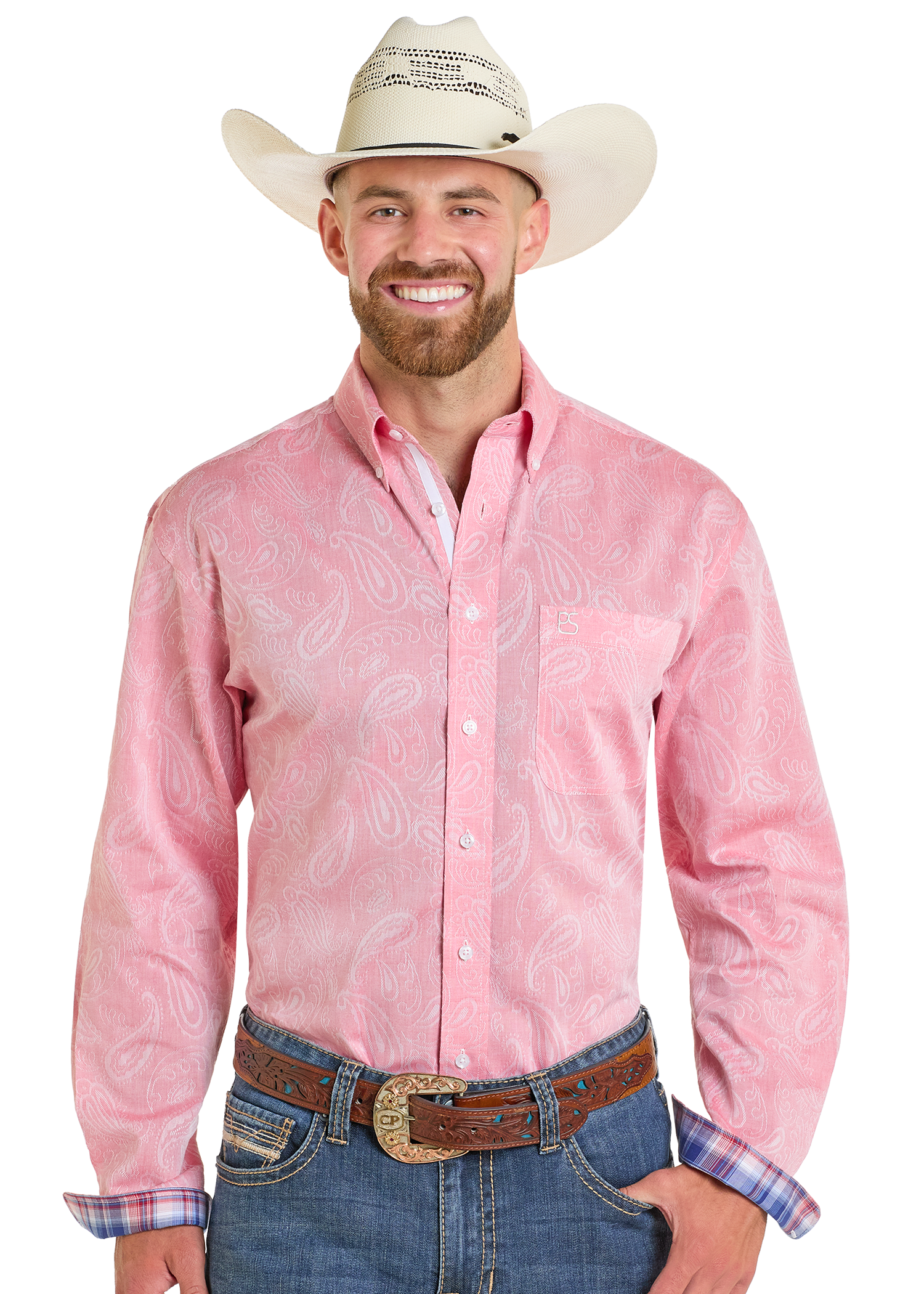 NewMicro Print Diamond Long Sleeve Button Shirt