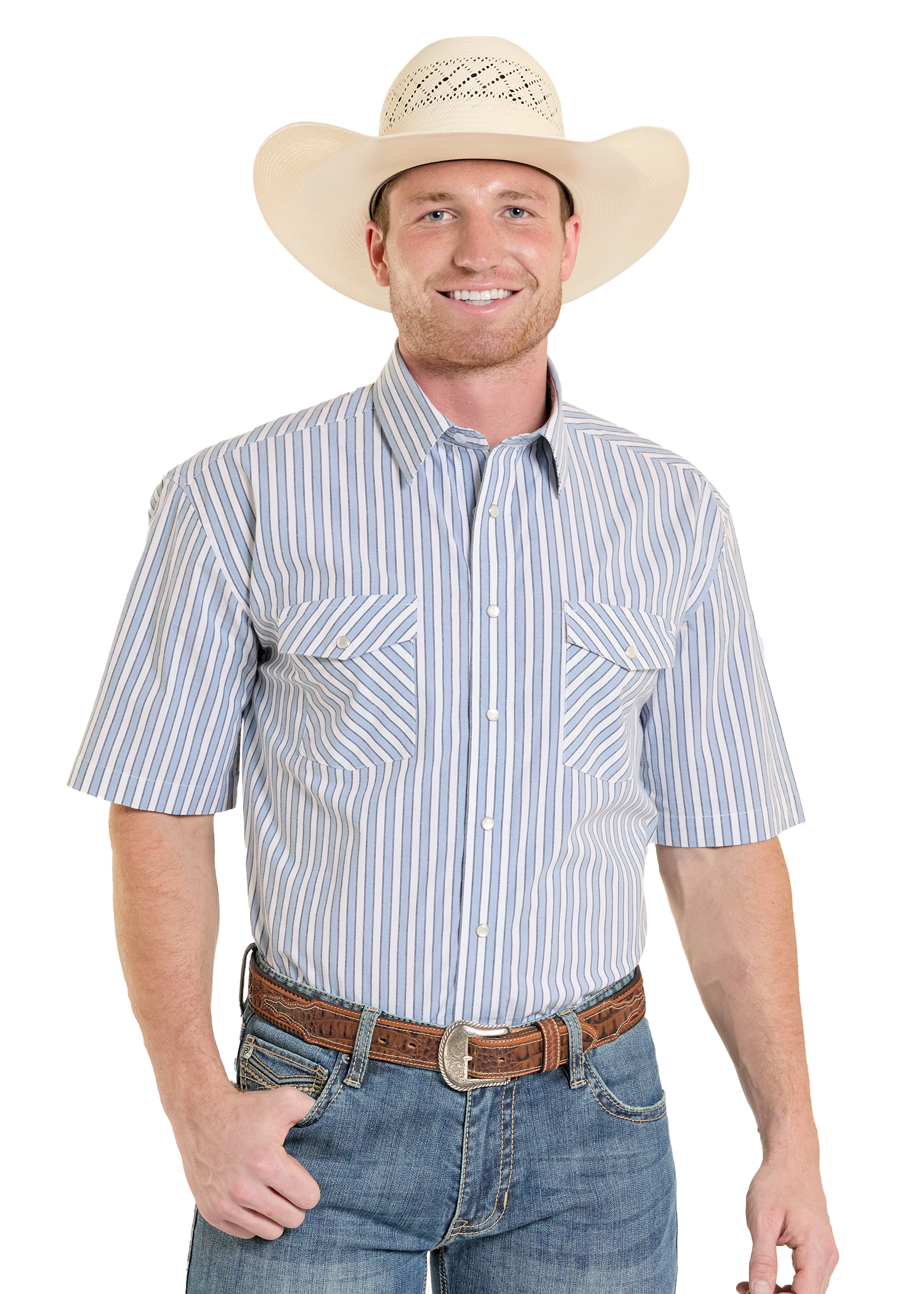 NewBlue Stripe Short Sleeve Snap Shirt