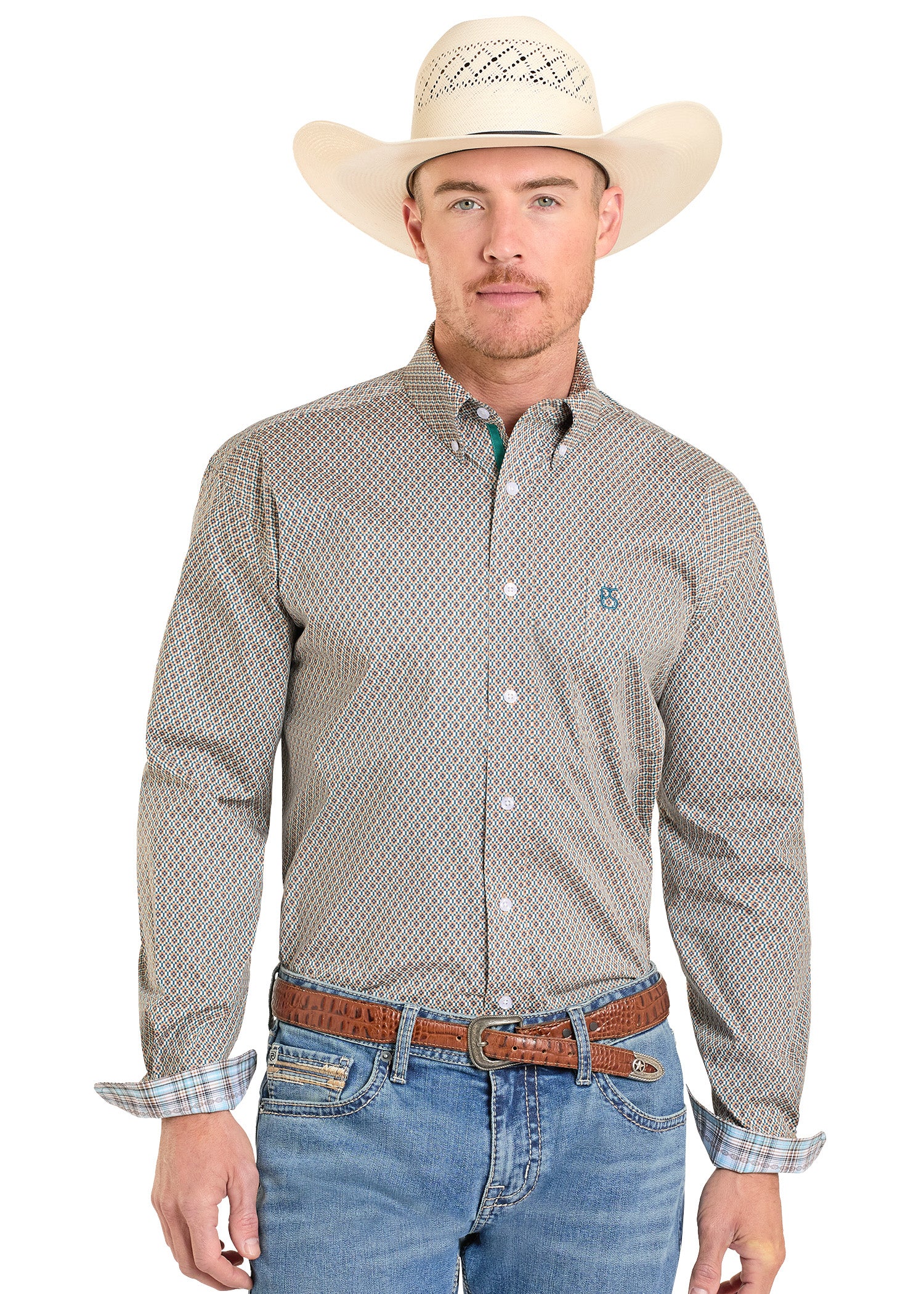 SaleRough Stock Diamond Geo Long Sleeve Snap Shirt