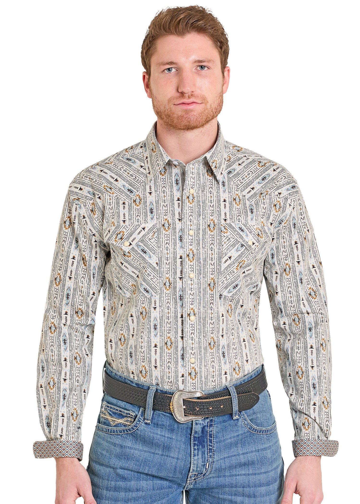 SaleRough Stock Southwestern Aztec Long Sleeve Snap Shirt