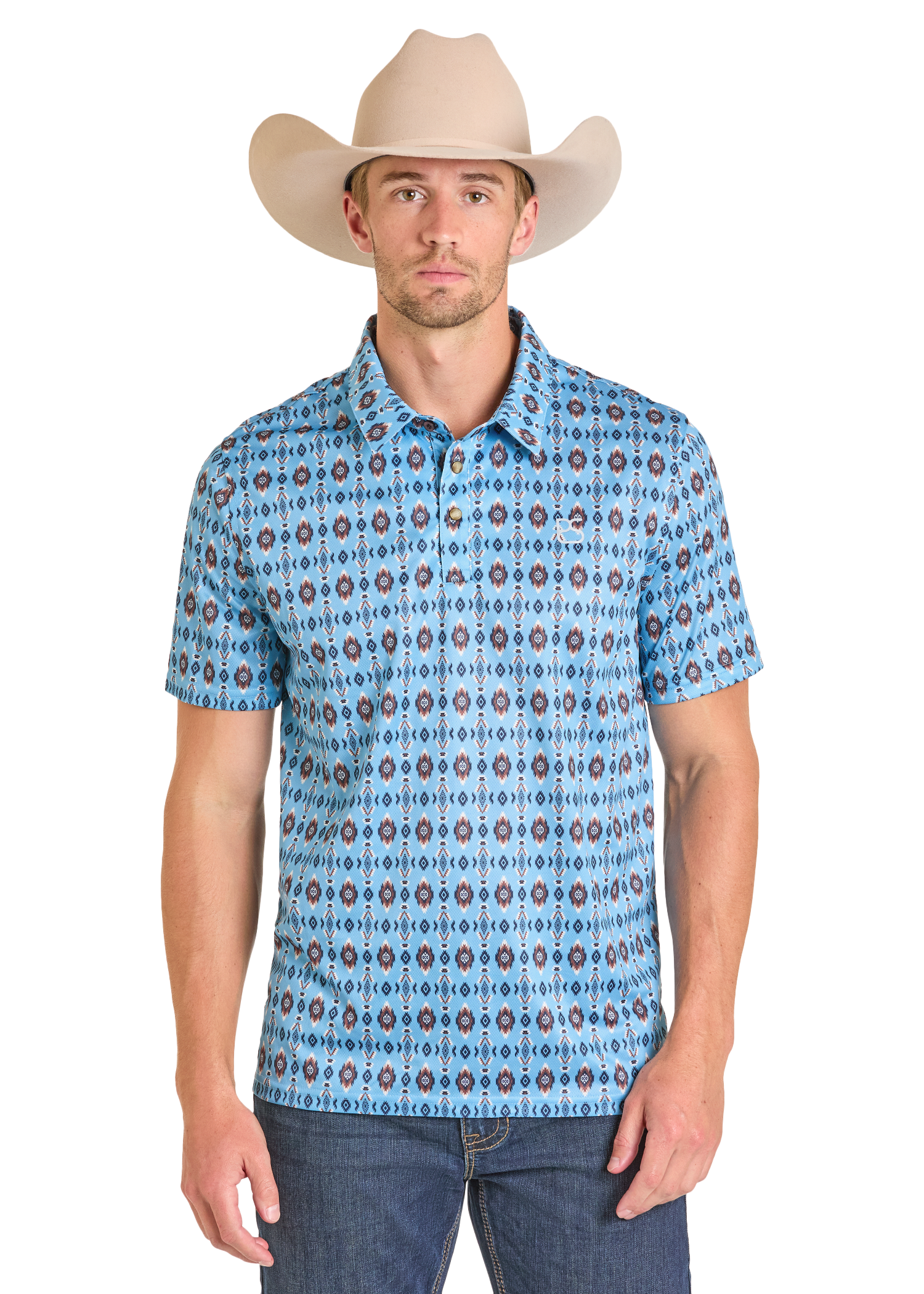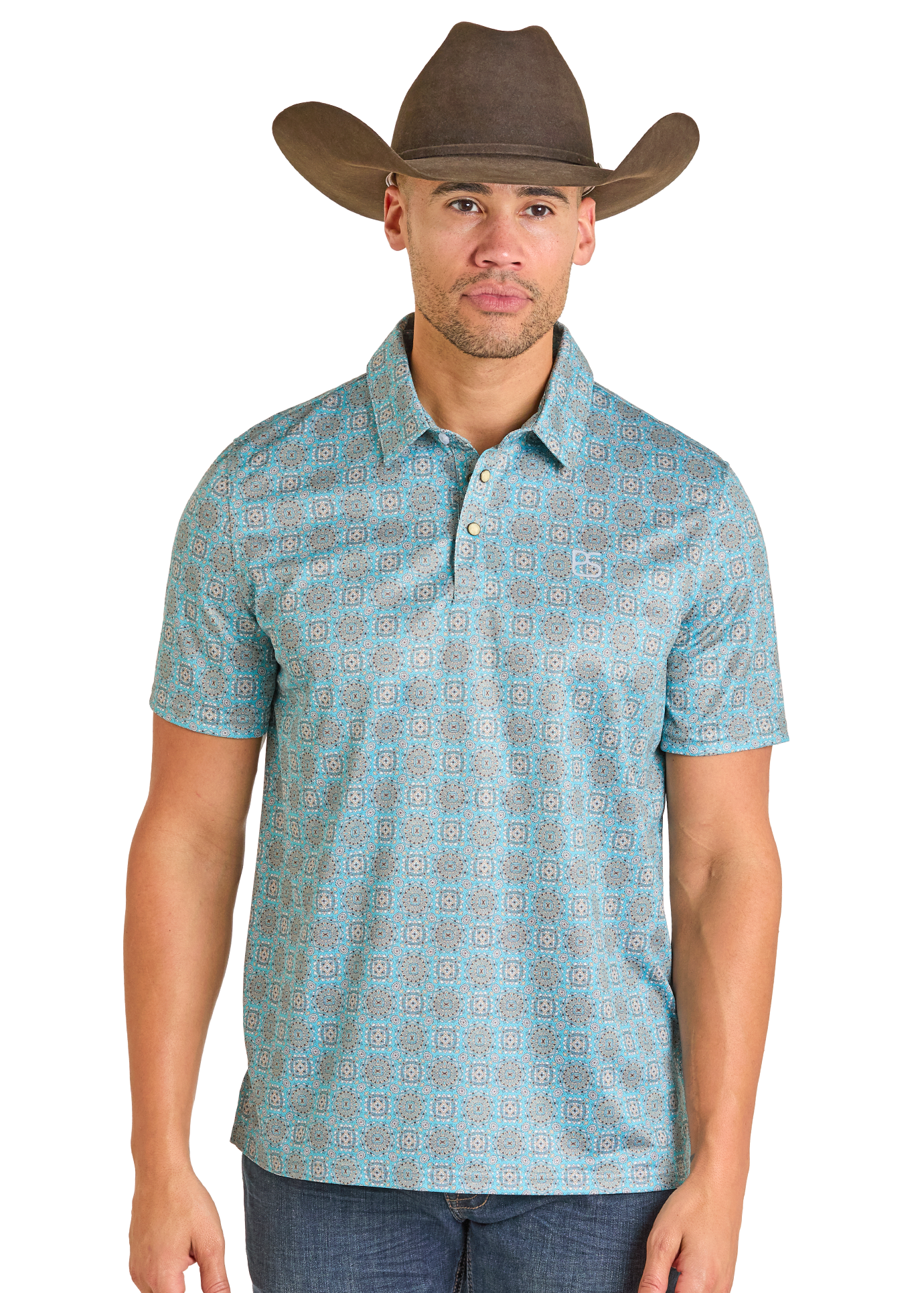 NewTurquoise Medallion Diamond Long Sleeve Button Shirt