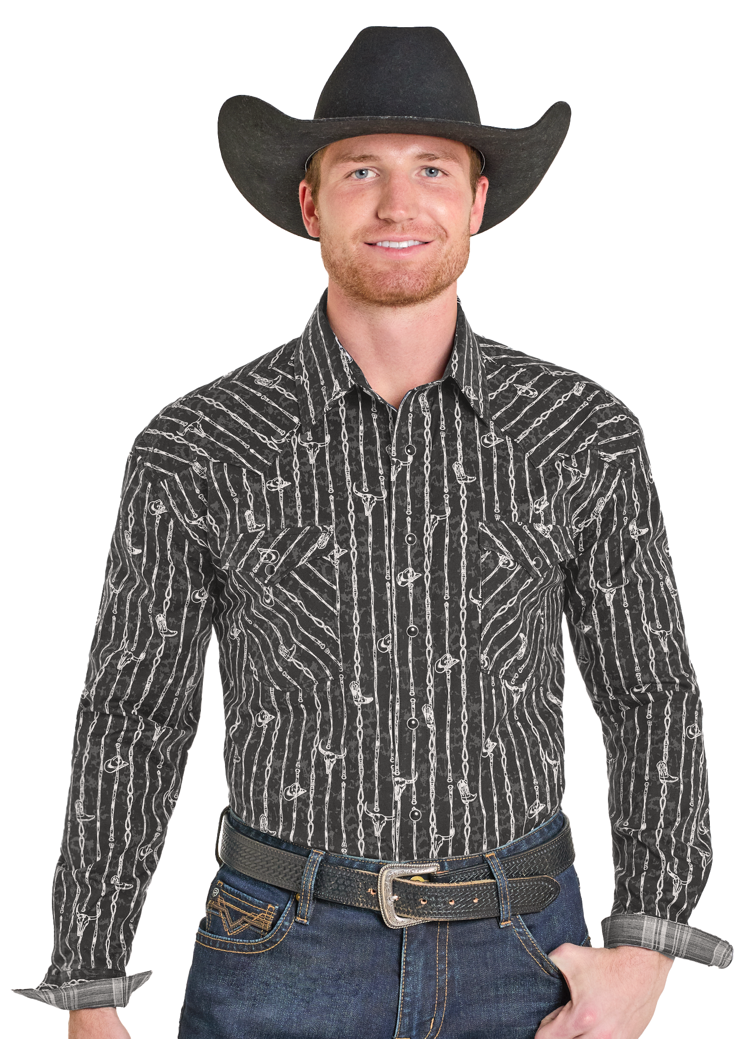 NewRough Stock Barbwire Steer Long Sleeve Snap Shirt