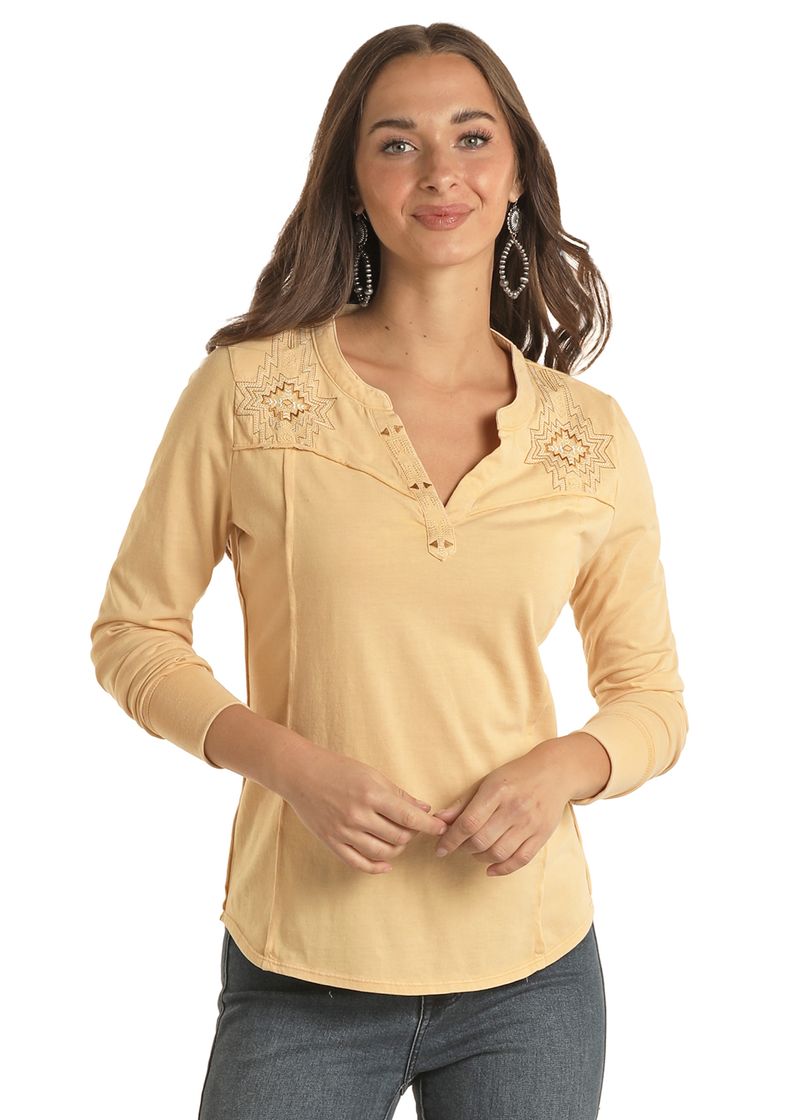 SaleEmbroidered Henley Long Sleeve Tee
