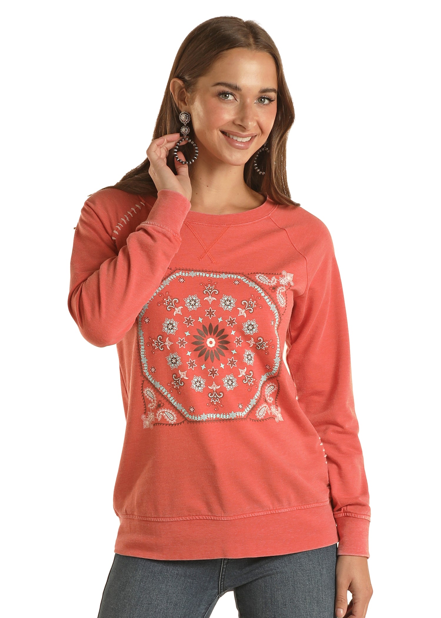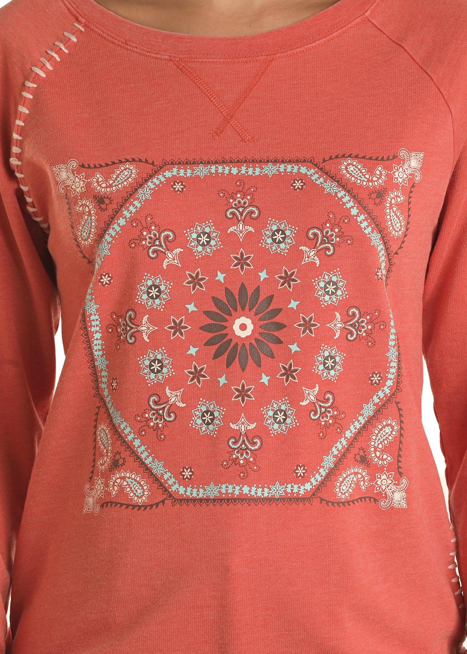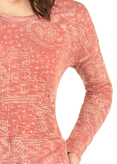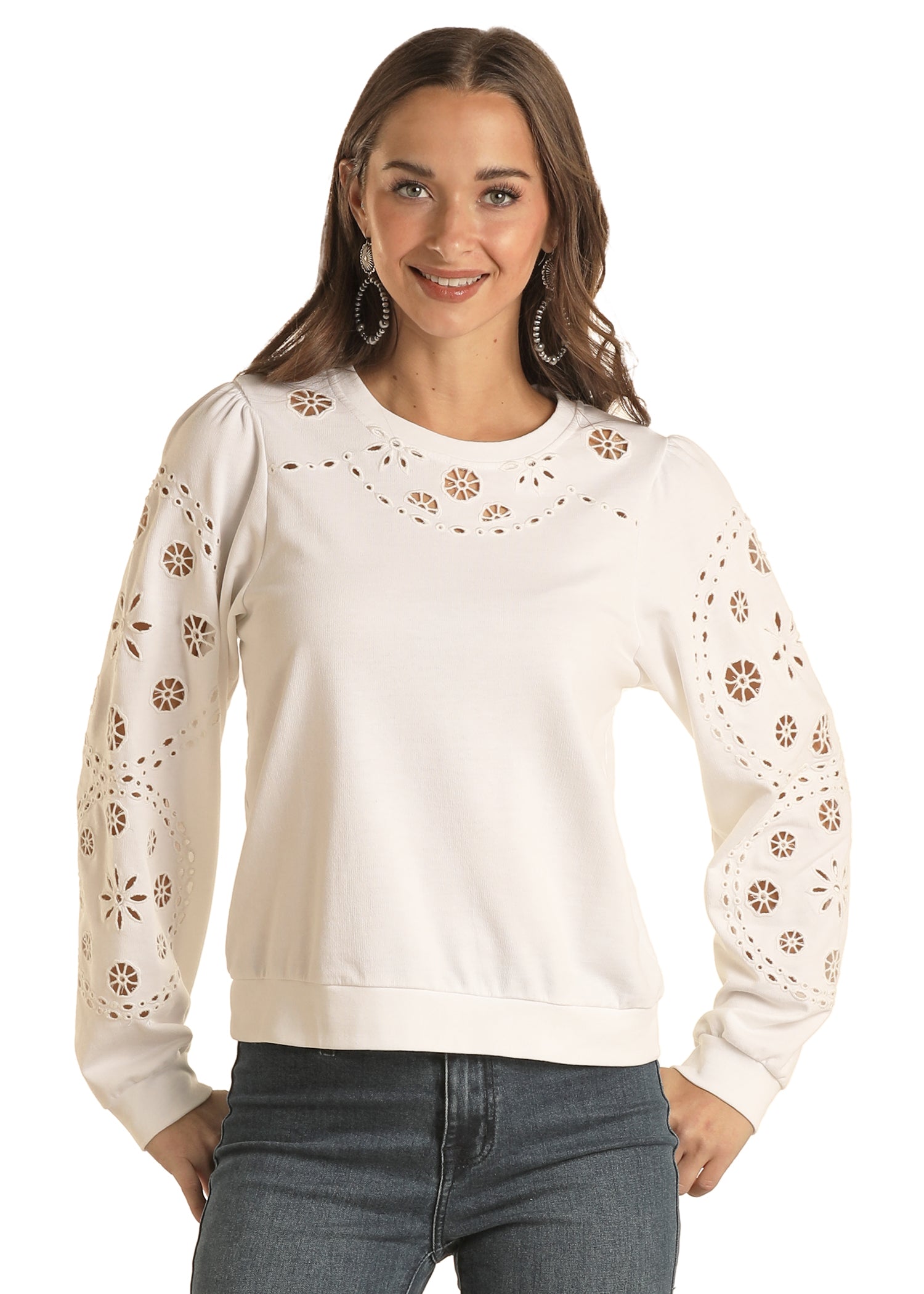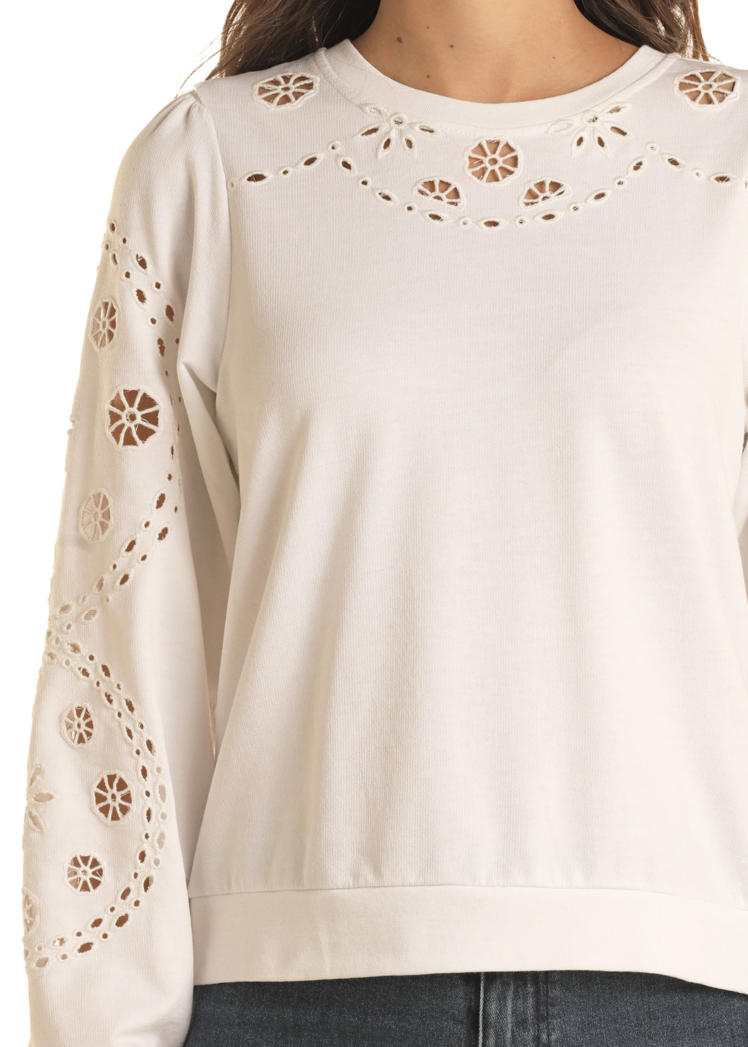 NewEmbroidered Notch Neck Long Sleeve Waffle Top