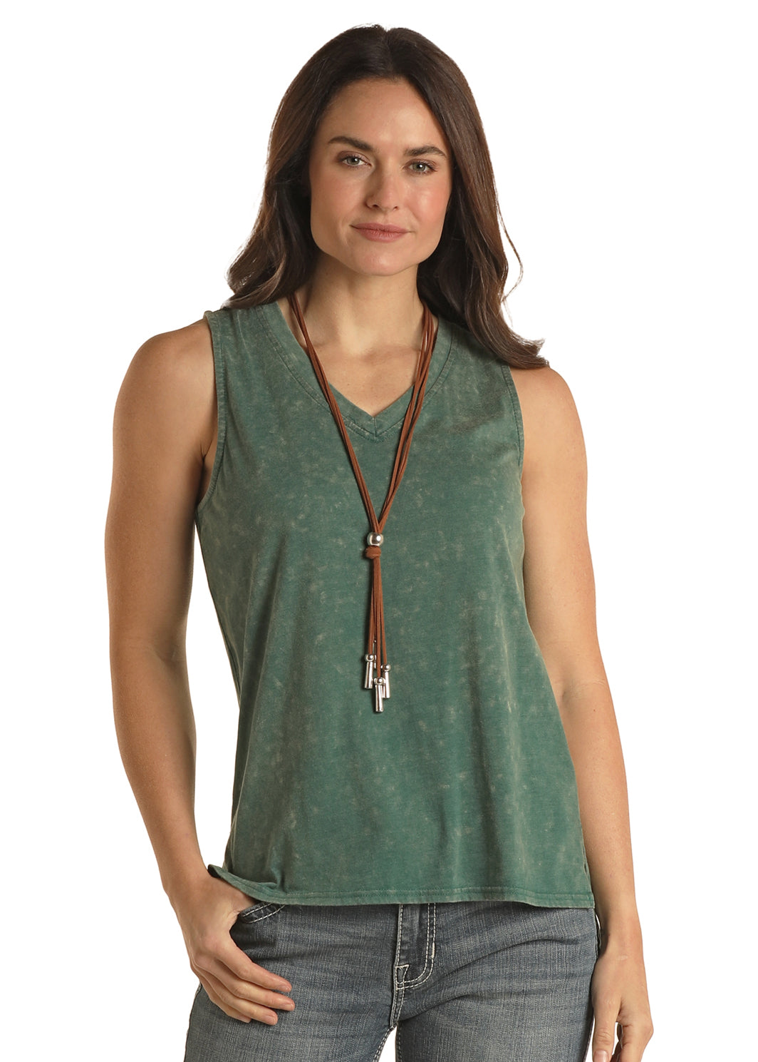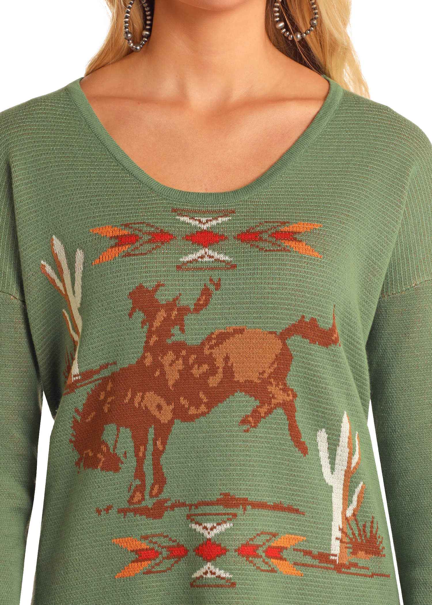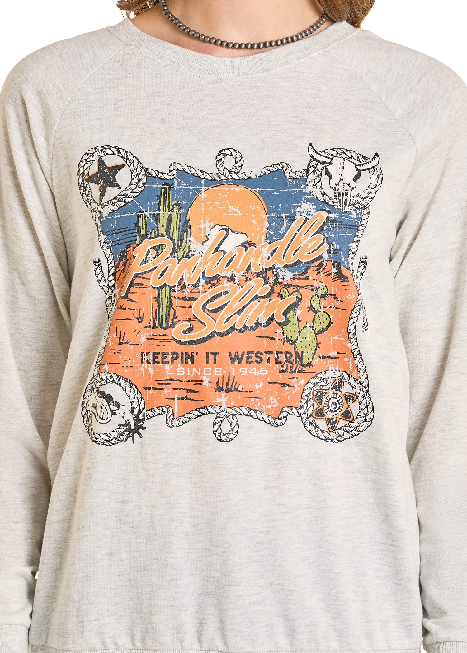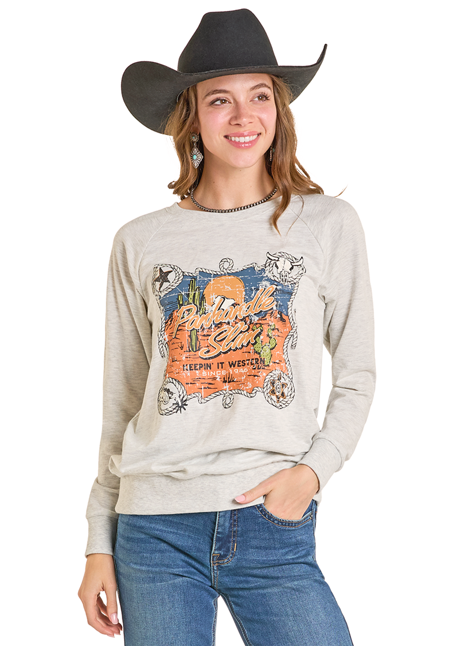 NewEmbroidered Notch Neck Long Sleeve Waffle Top