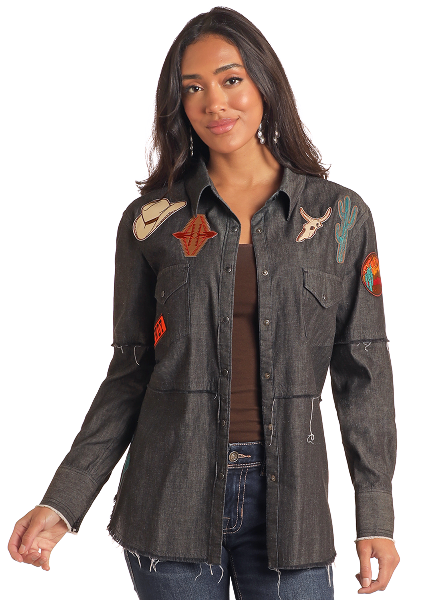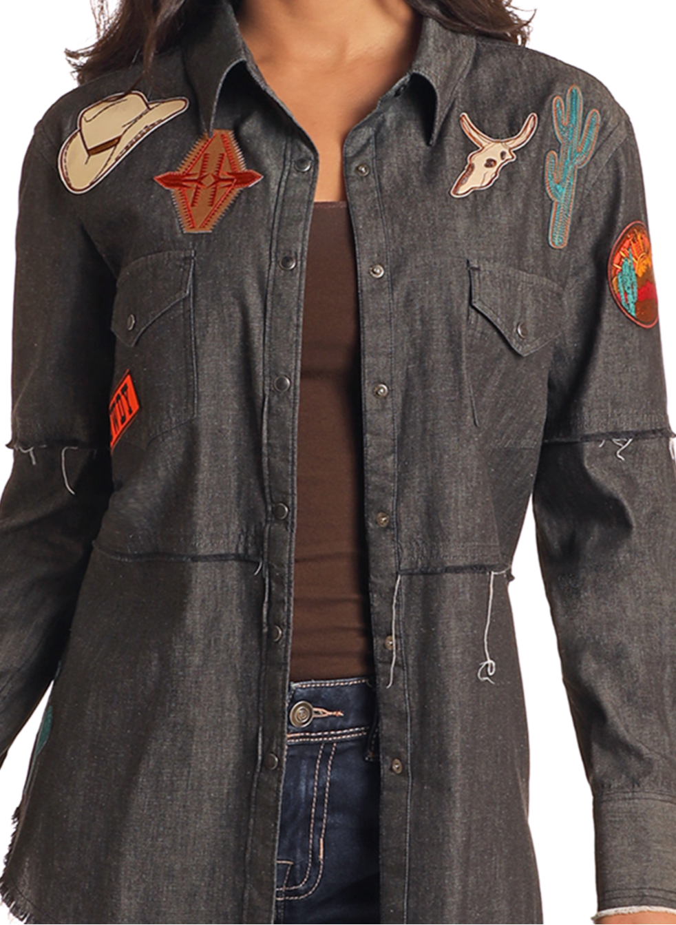 NewDenim Embroidered Yoke Long Sleeve Snap Shirt