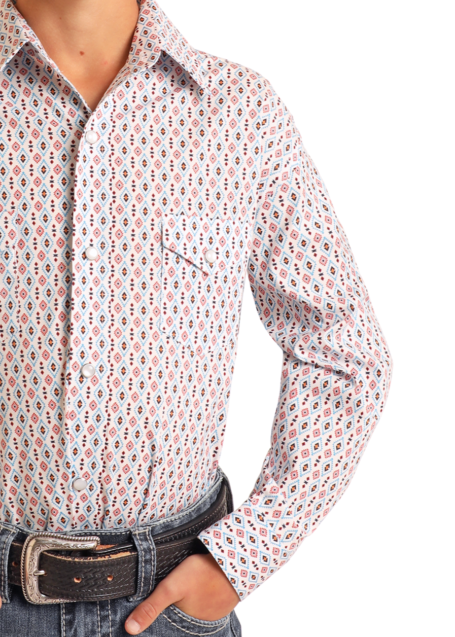 Boys' Rough Stock Diamond Geo Print Long Sleeve Snap Shirt