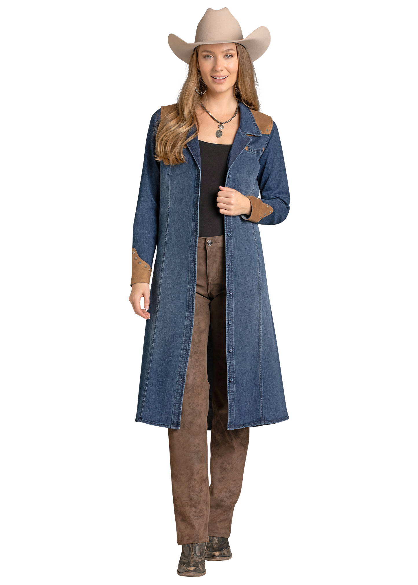 Denim Dress With Microsuede Yokes