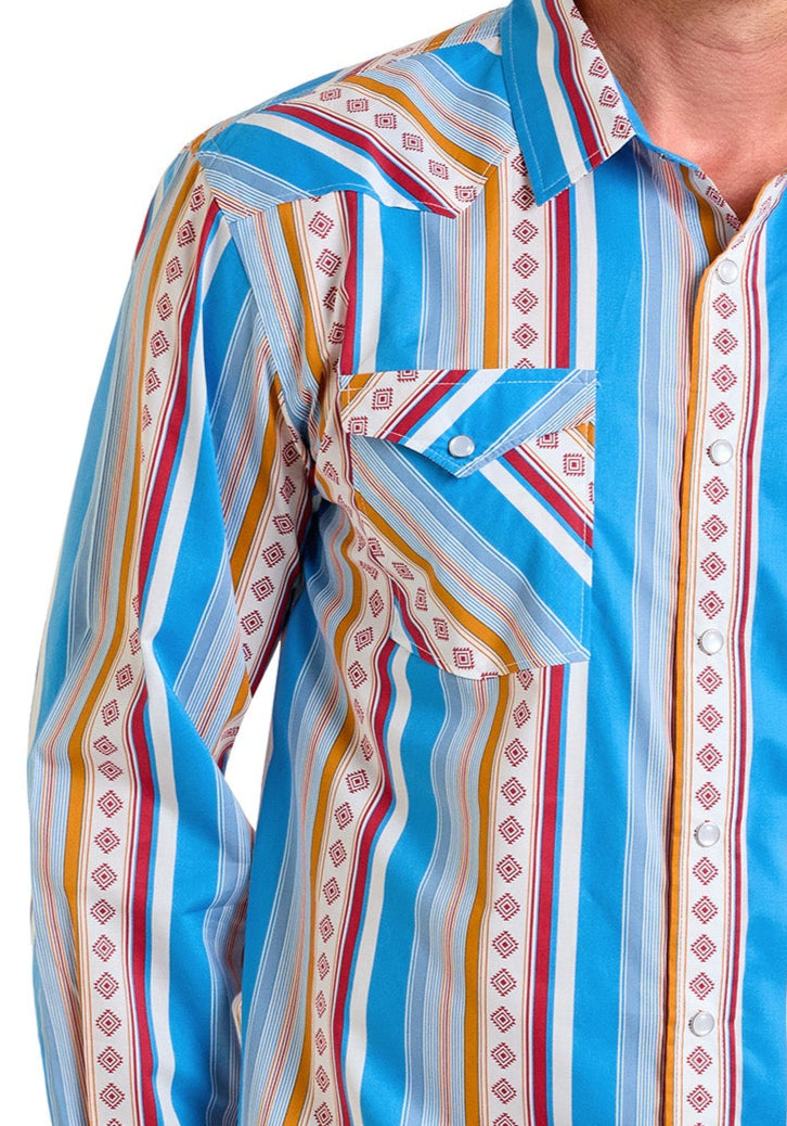 Modern Vintage Aztec Stripe Long Sleeve Snap Shirt