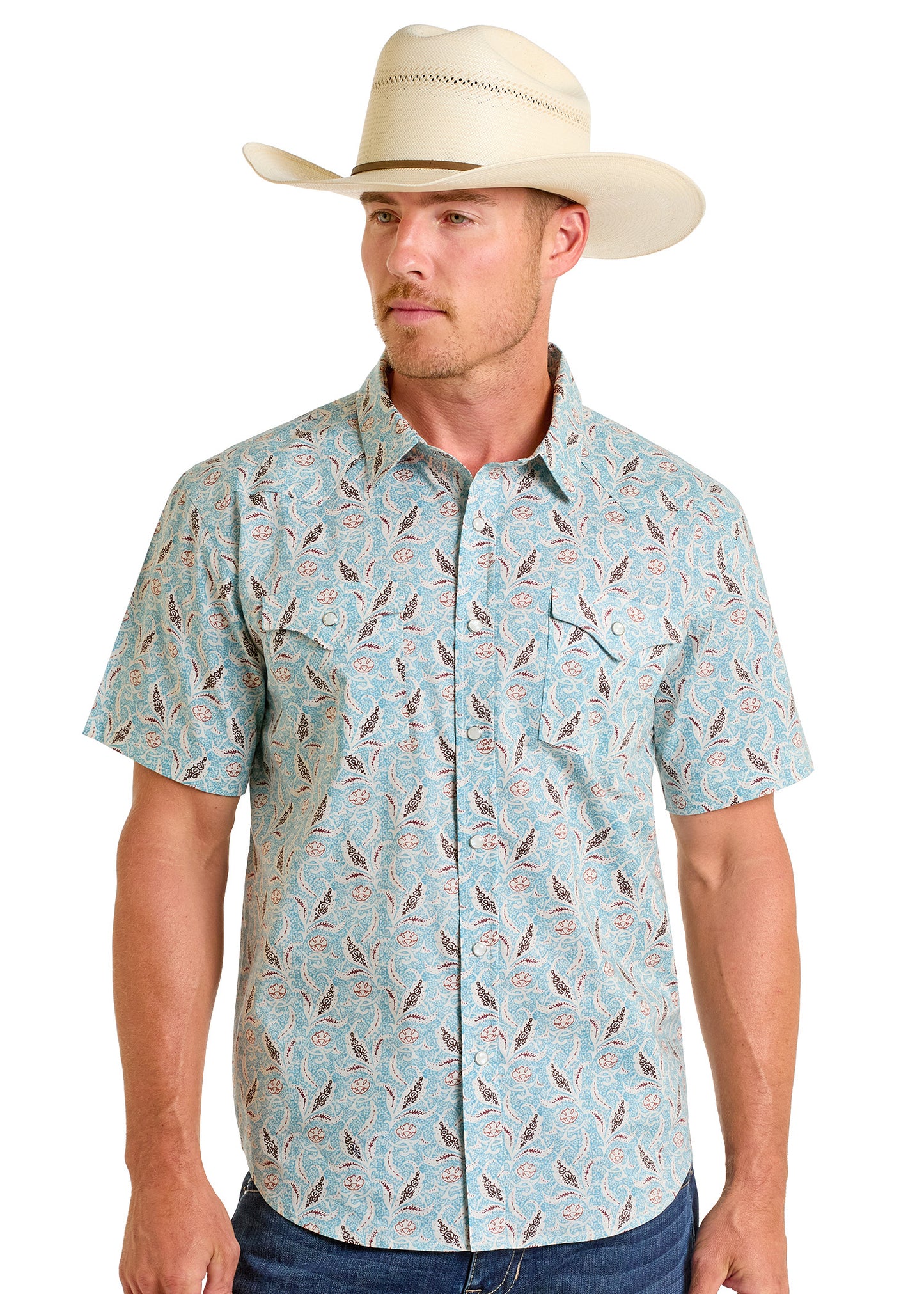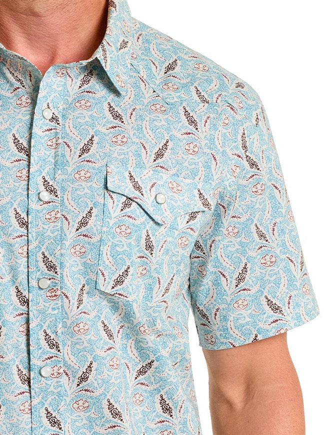Modern Vintage Blue Paisley Short Sleeve Snap Shirt