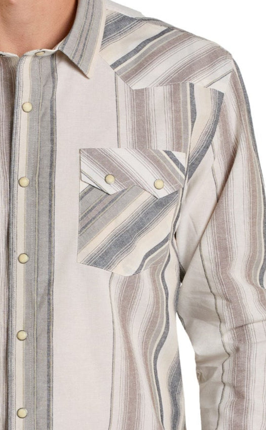 Modern Vintage Natural Stripe Long Sleeve Snap Shirt