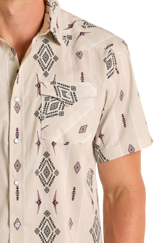 Modern Vintage Simple Aztec Short Sleeve Snap Shirt
