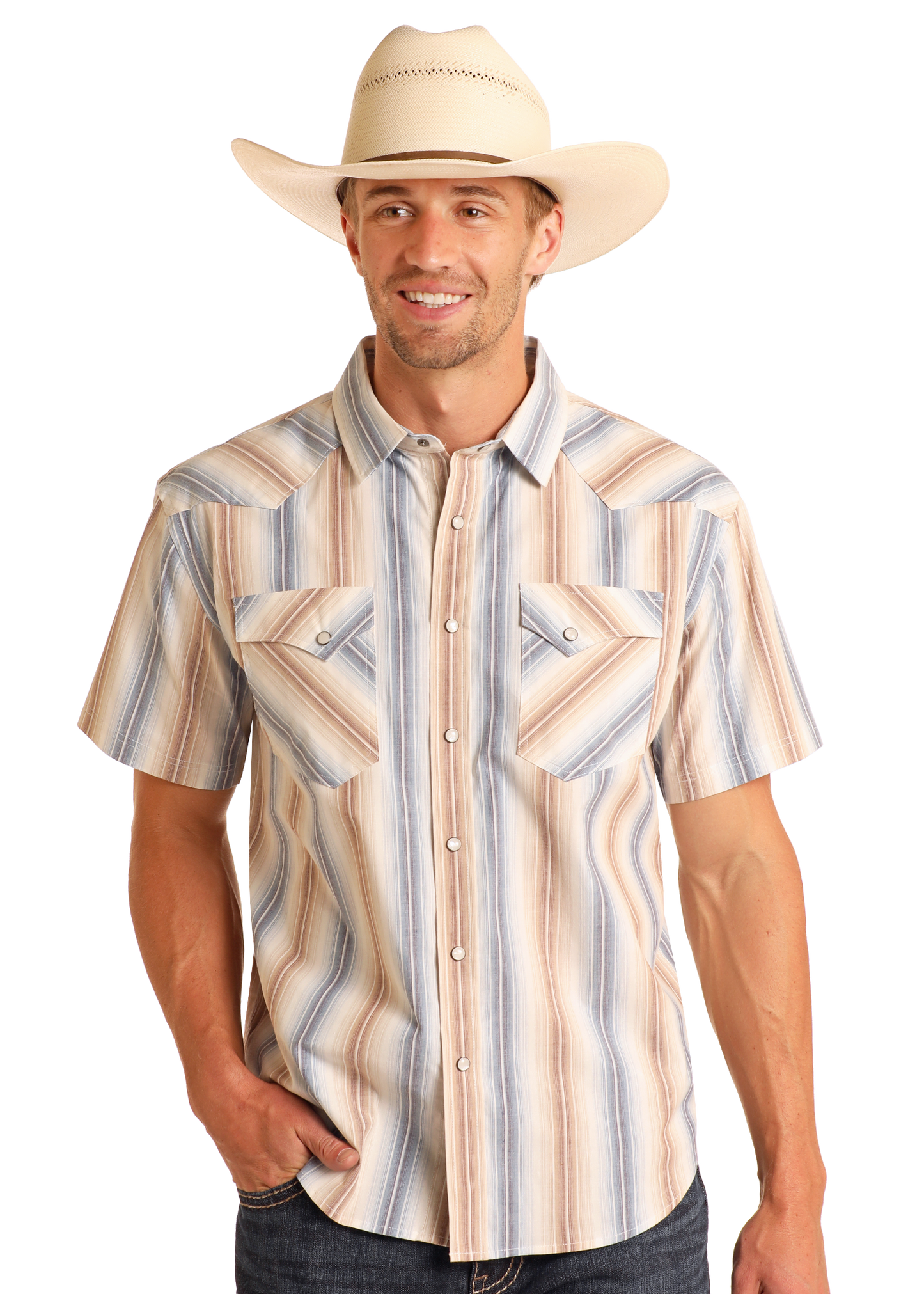 Modern Vintage Striped Short Sleeve Snap Shirt