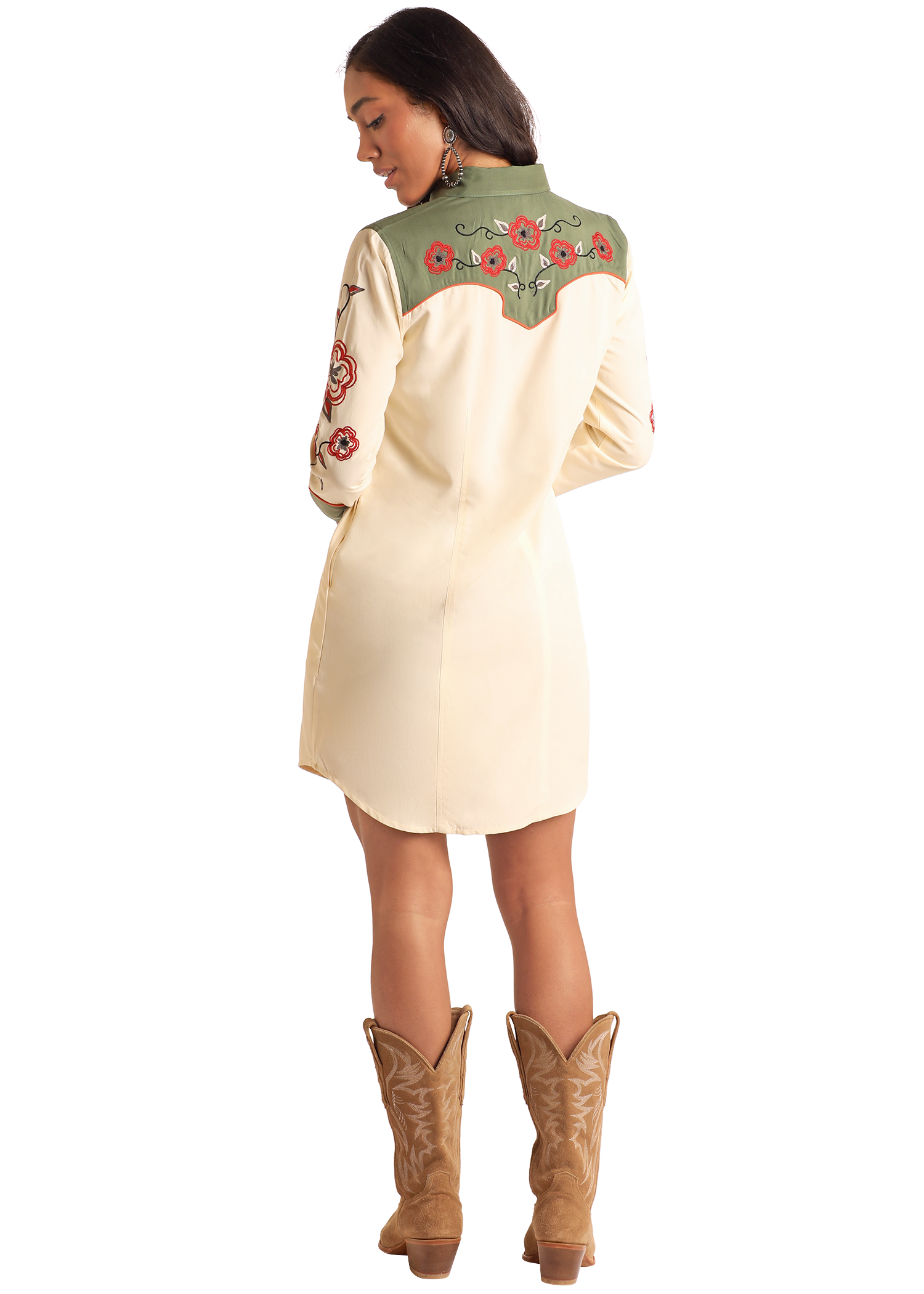Retro Floral Embroidered Shirt Dress