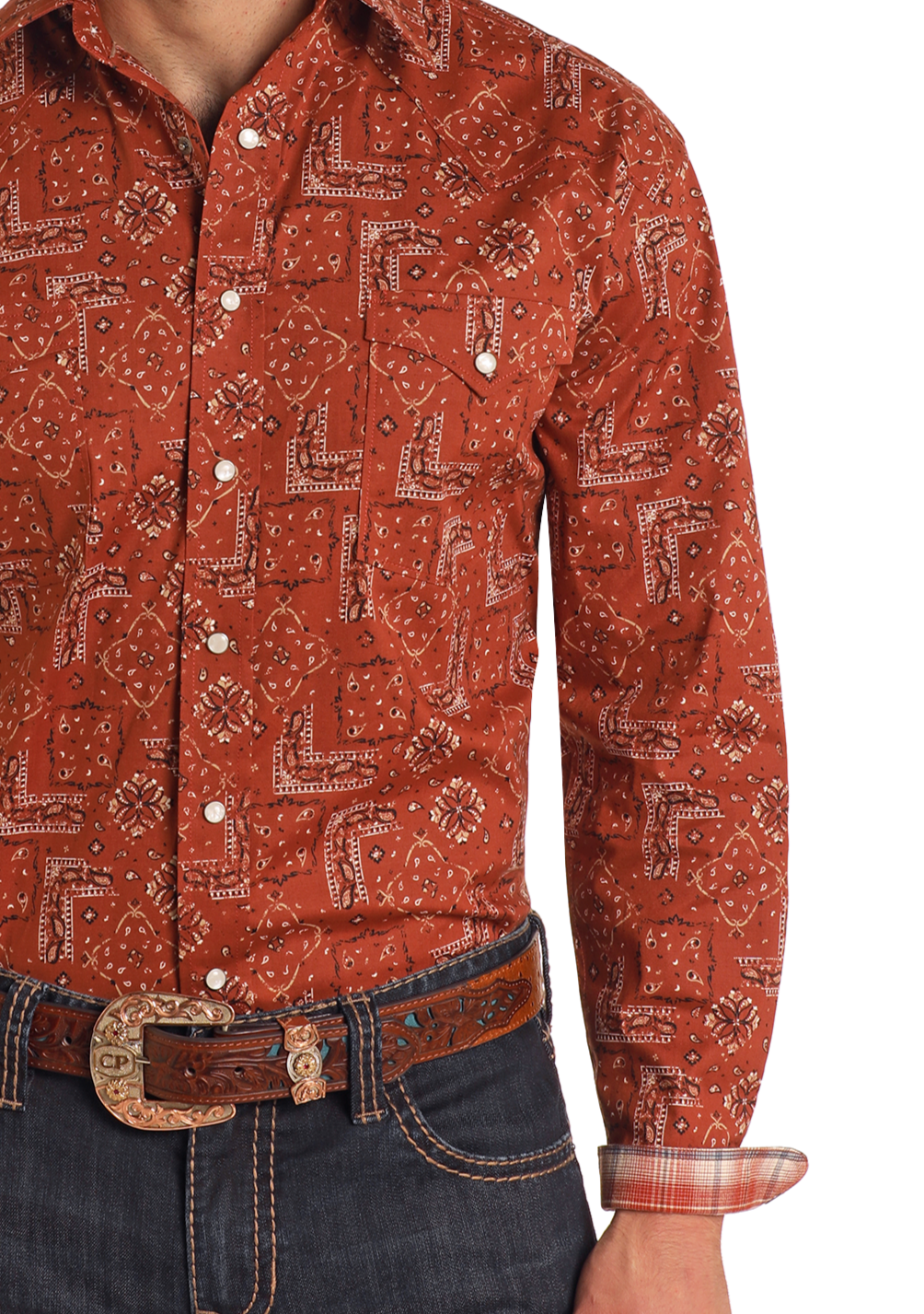Rough Stock Bandana Print Long Sleeve Snap Shirt