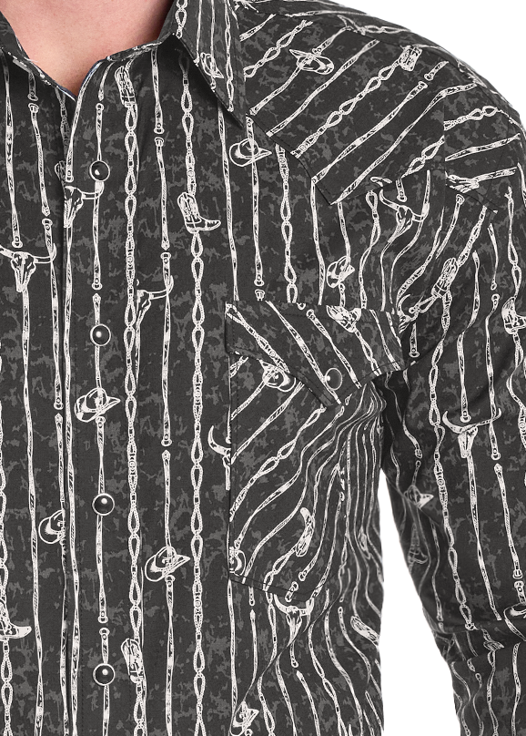 Rough Stock Barbwire Steer Long Sleeve Snap Shirt
