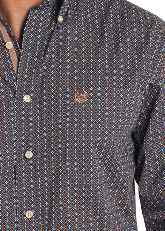 Rough Stock Blue Geo Long Sleeve Button Down Shirt