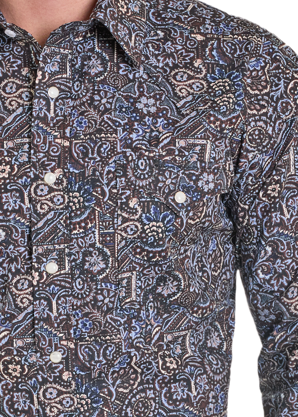 Rough Stock Distressed Floral Long Sleeve Snap Shirt