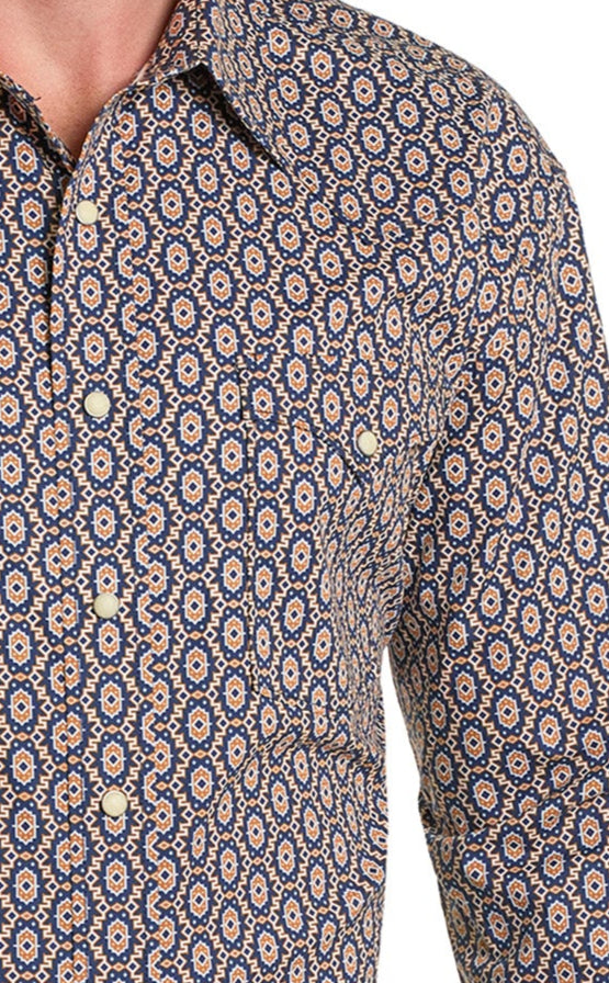 Rough Stock Geometric Plaid Long Sleeve Snap Shirt