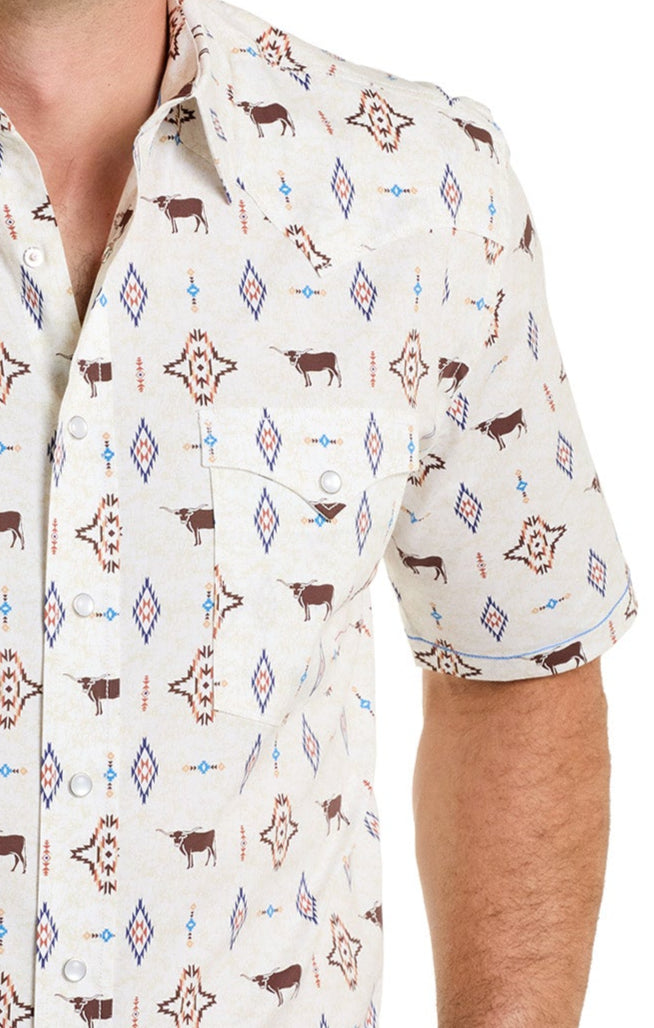Rough Stock Novelty Steer Short Sleeve Snap Shirt
