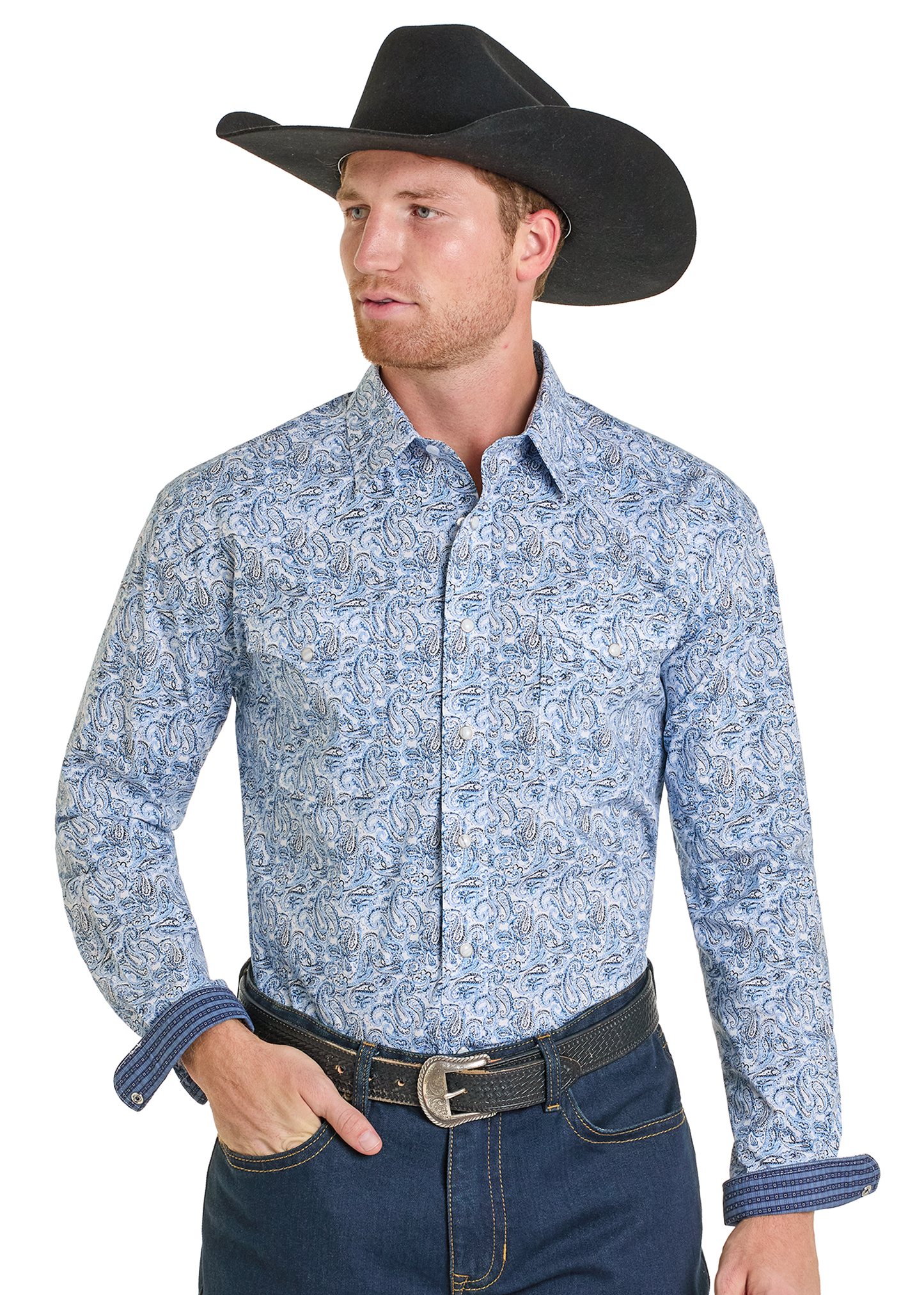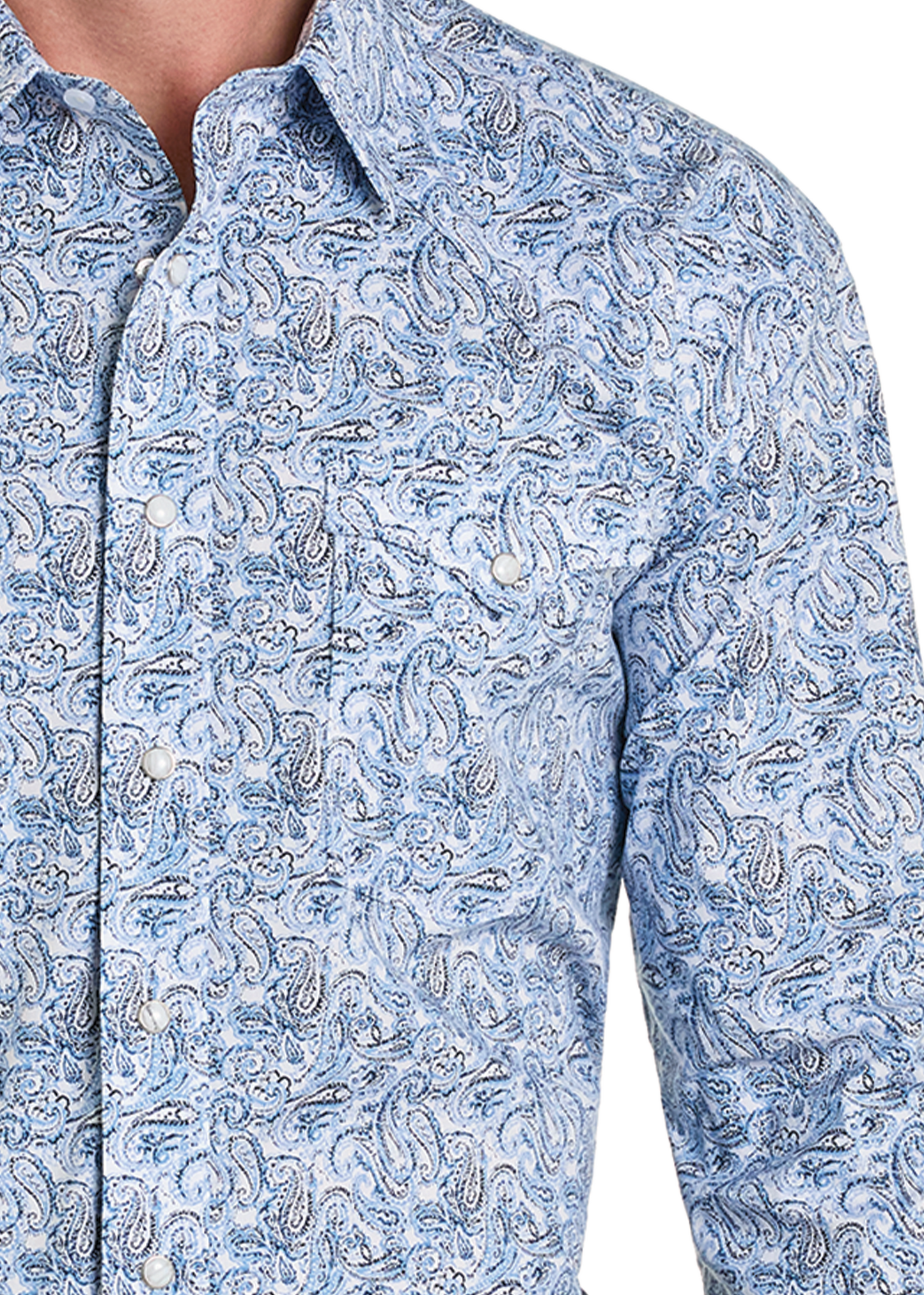 Rough Stock Paisley Blues Long Sleeve Snap Shirt