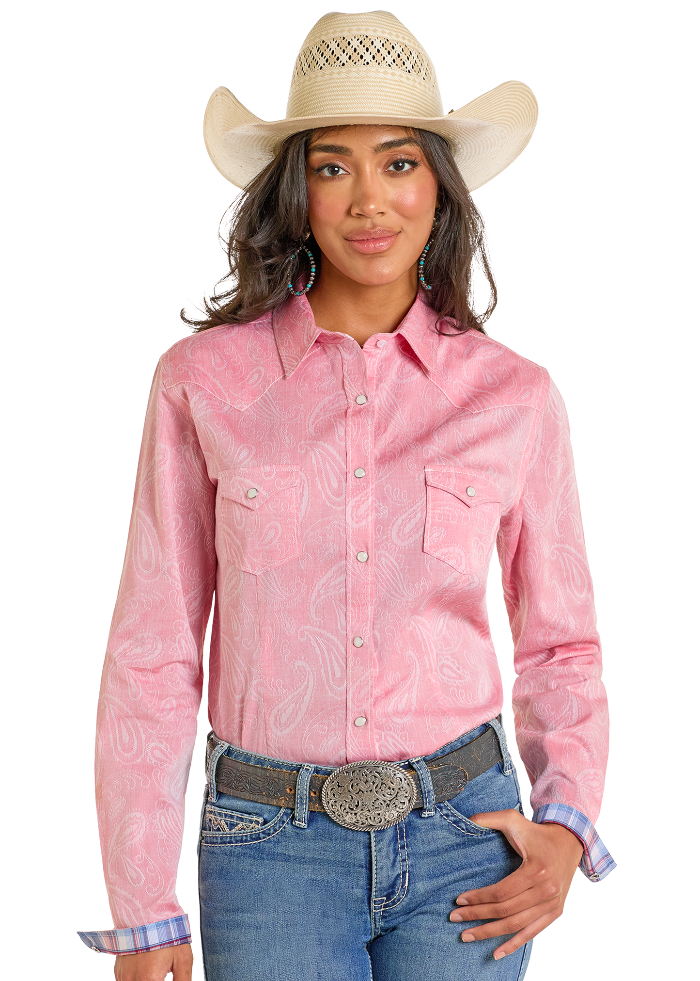 Rough Stock Pink Paisley Jacquard Long Sleeve Snap Shirt