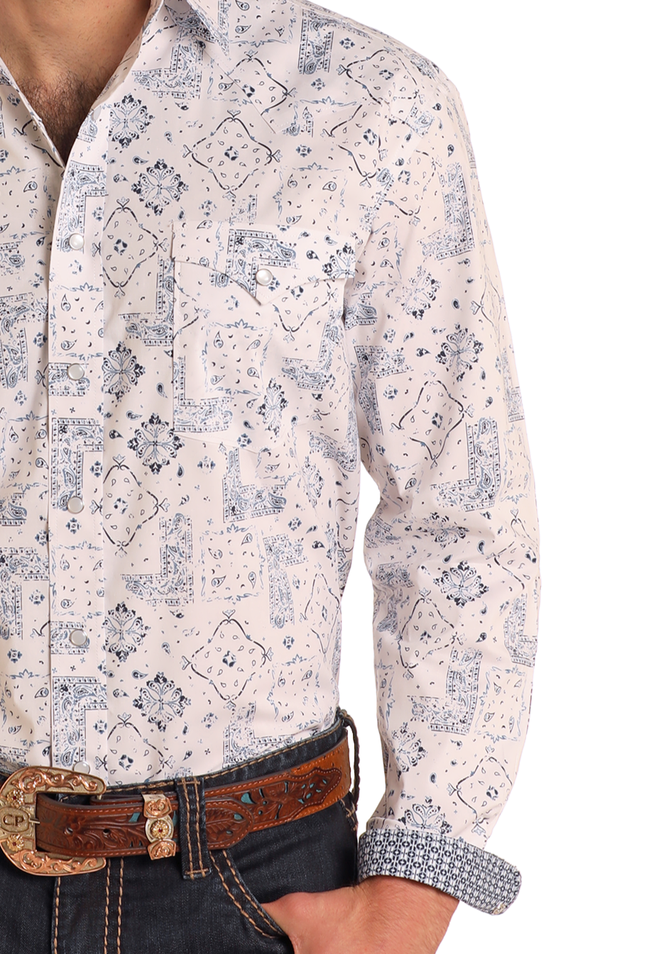 Rough Stock White Bandana Print Long Sleeve Snap Shirt