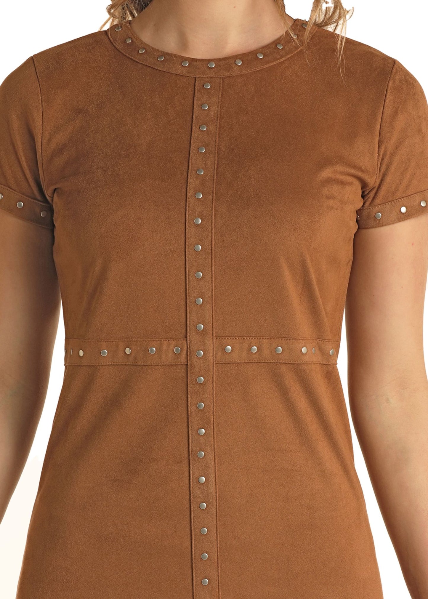 The Studded Suede Mini Dress puts an authentic spin on a classic style. Made from a polyester/ spandex blend, this cap sleeve dress features studded detail and back zip closures for a flattering fit. Ideal for any type of occasion, it provides a chic and comfortable look.