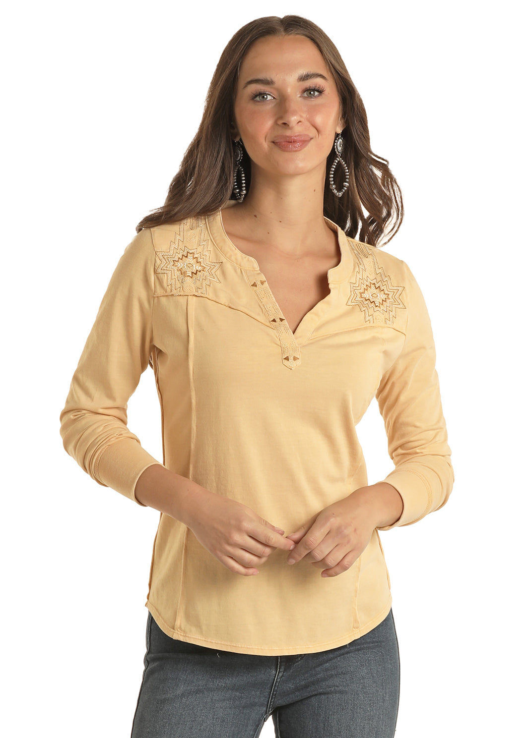 Sunshine Embroidered Yoke Long Sleeve Top