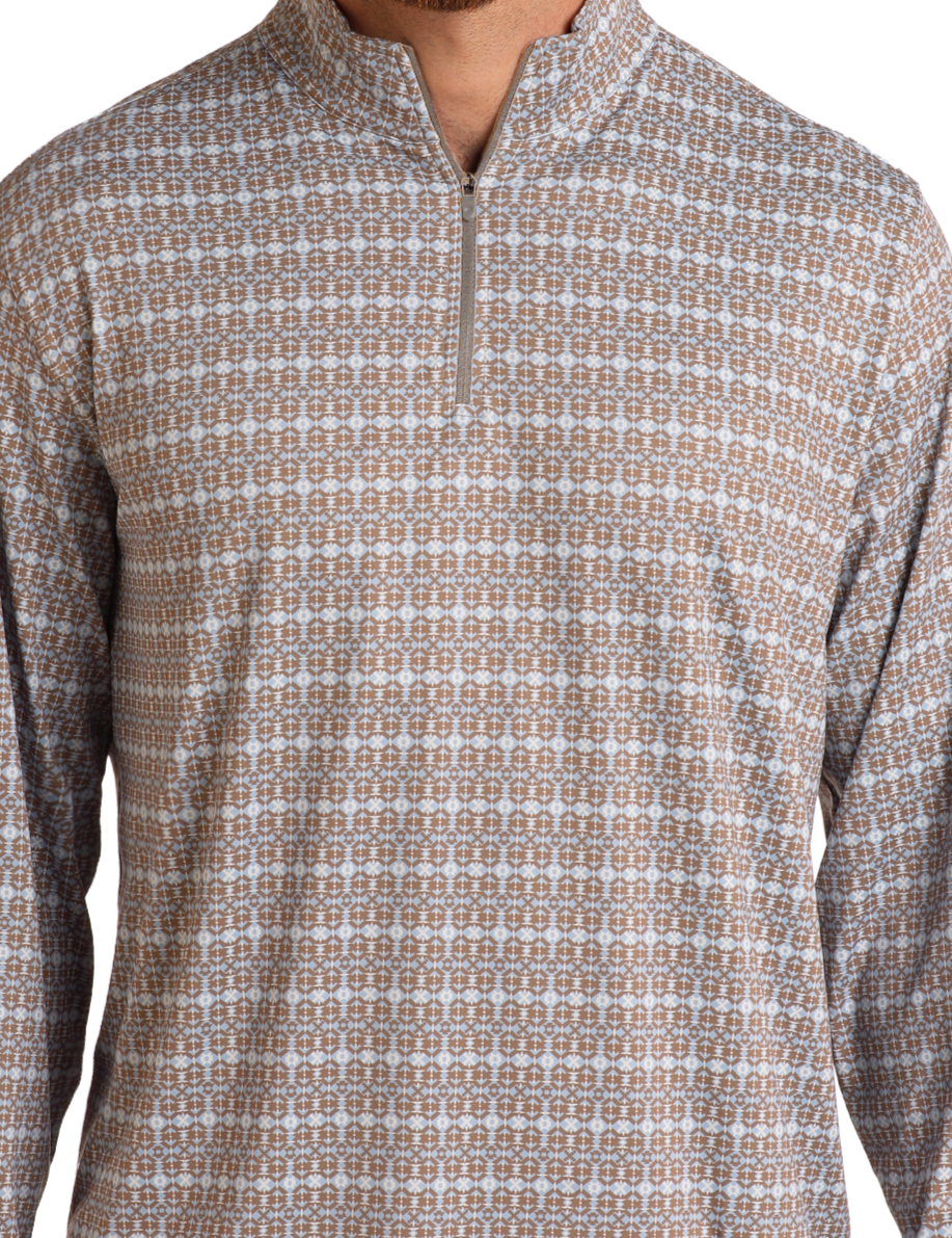 Tan Geometric Print Performance Pullover