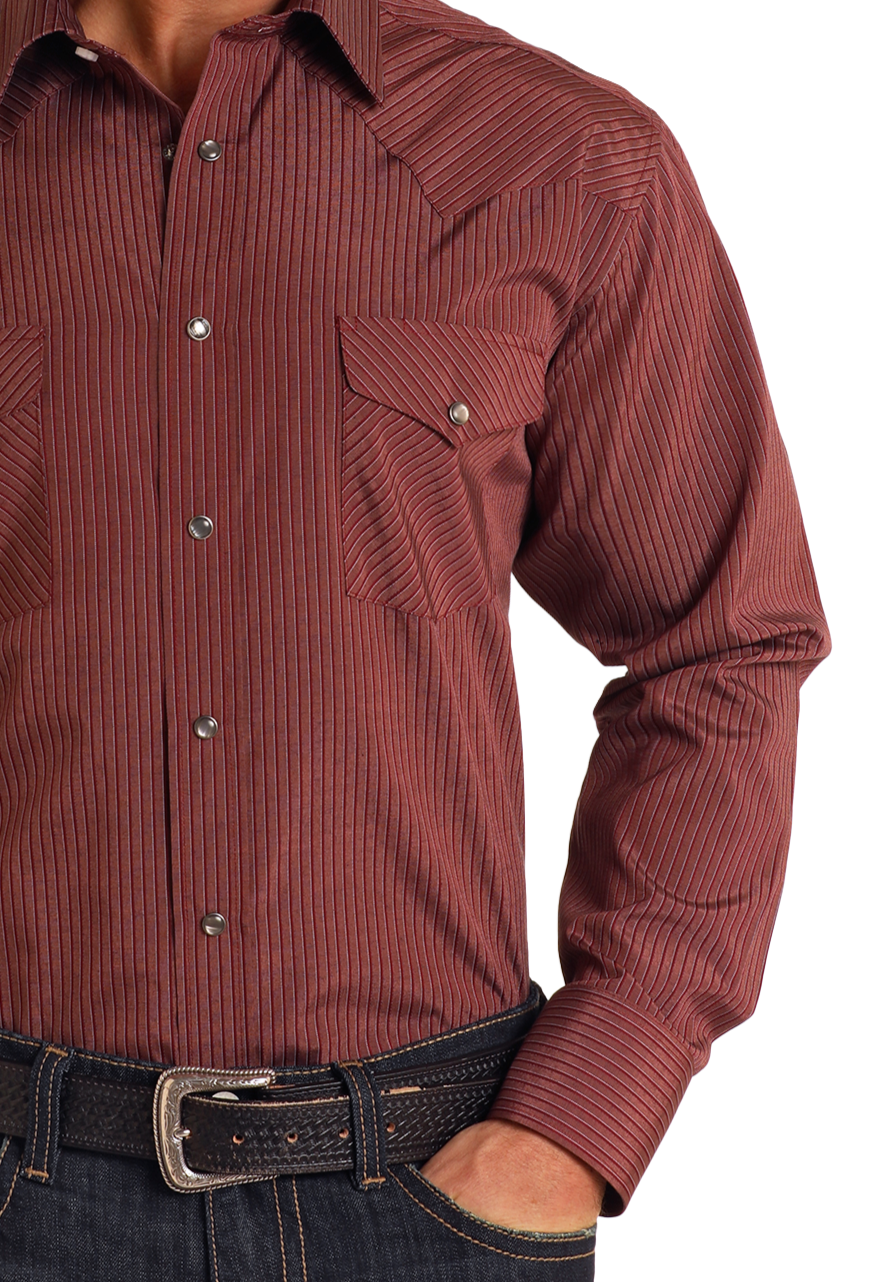 Tonal Dobby Striped Long Sleeve Snap Shirt